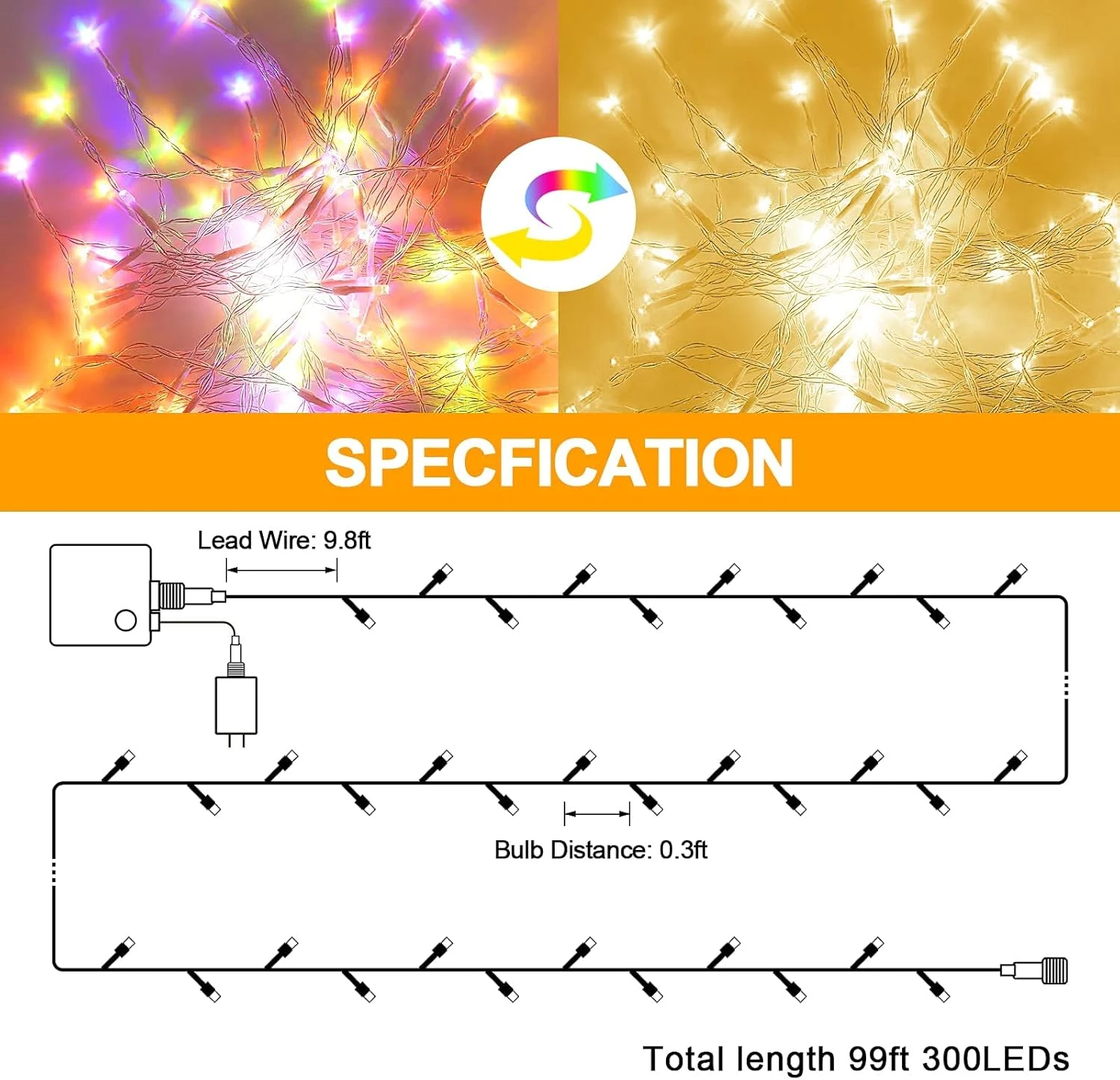 - 【Wide Application Scenarios 】The 99ft length plug in fairy string lights with 300 led bulbs are perfect for indoor & outdoor anywhere you want to decorate. It creates a warm, joyful, and romantic atmosphere for decorative passageway, garden, yard, lawn, Christmas, wedding, holiday, party, birthday party etc.