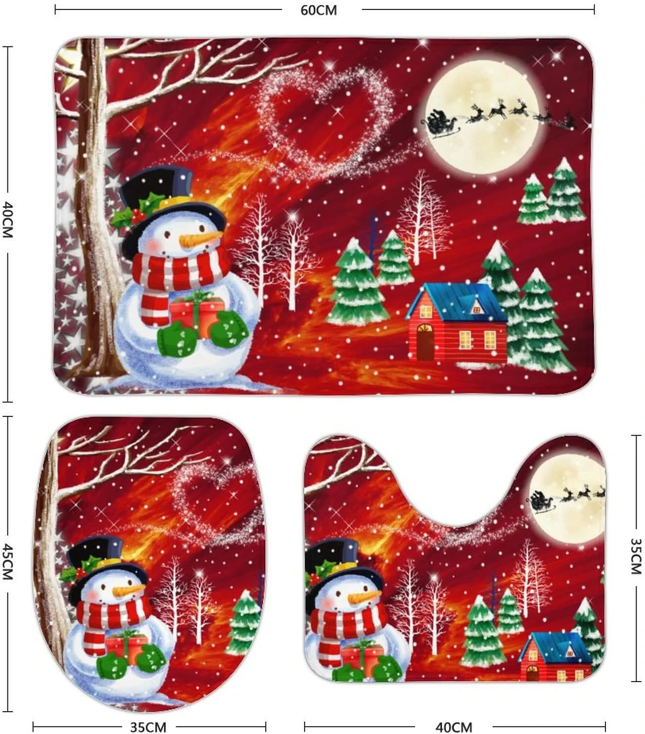 - ⛄[PREMIUM MATERIAL]: This Christmas bathroom set is made of Coral velvet, which is waterproof, environmentally friendly and pollution-free. The non-slip bath mat/U type rug are made of high-quality sponge, flannel and non-slip bottom, with super absorption and quick drying.