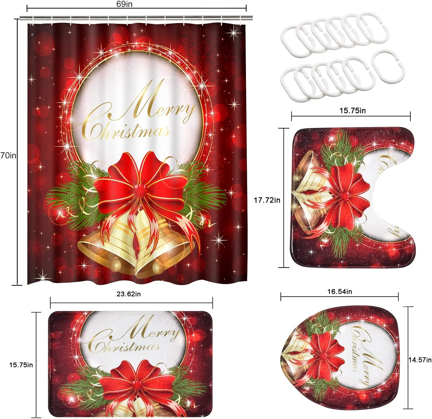- PREMIUM MATERIAL: This Christmas shower curtain set is made of eco-friendly polyester, has a good waterproof effect. The strong enhanced anti-slip bath mat/ U type rug is made of flannel, durable, non-toxic and safe, the best choice for your family.