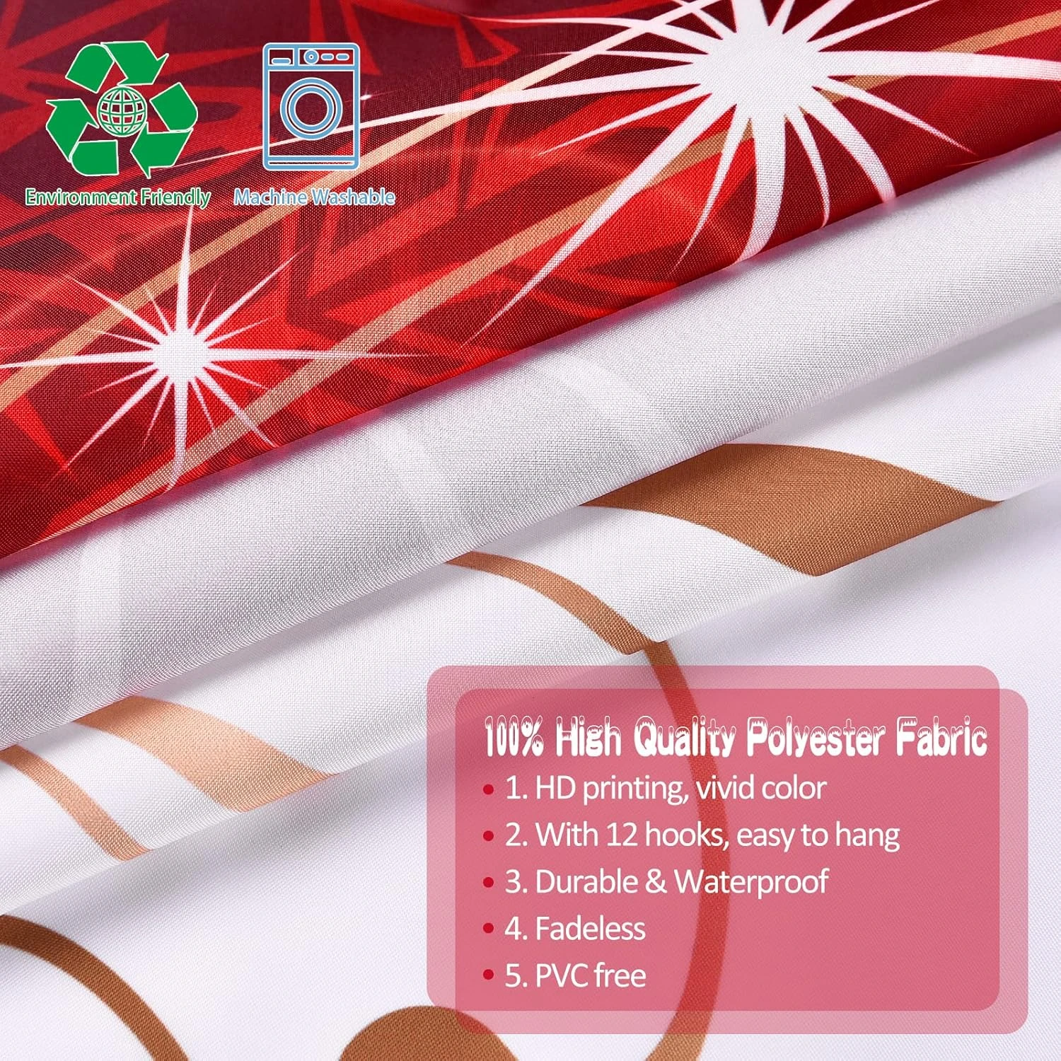 - EASY TO INSTALL & USE: We gift 12 strong hooks free for you. You don’t have to worry about how to install Christmas shower curtain. 12 reinforced top-header grommets for hanging simply; Non-slip bath mat/ rug and toilet lid cover matching.