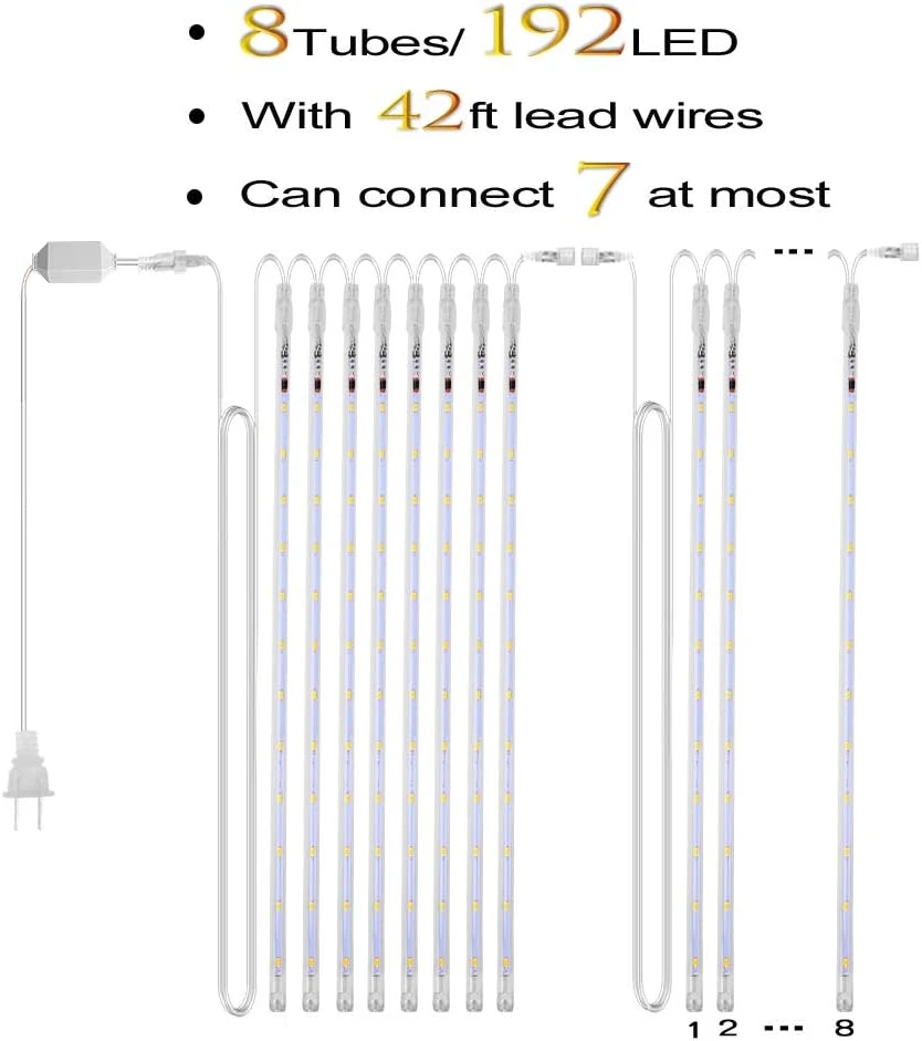 - Brightness: 8 tubes 192 LED, which brings a brighter and more lively experience. The consistency is super good. It is like a meteor crossing. It is the first choice for decorate holiday