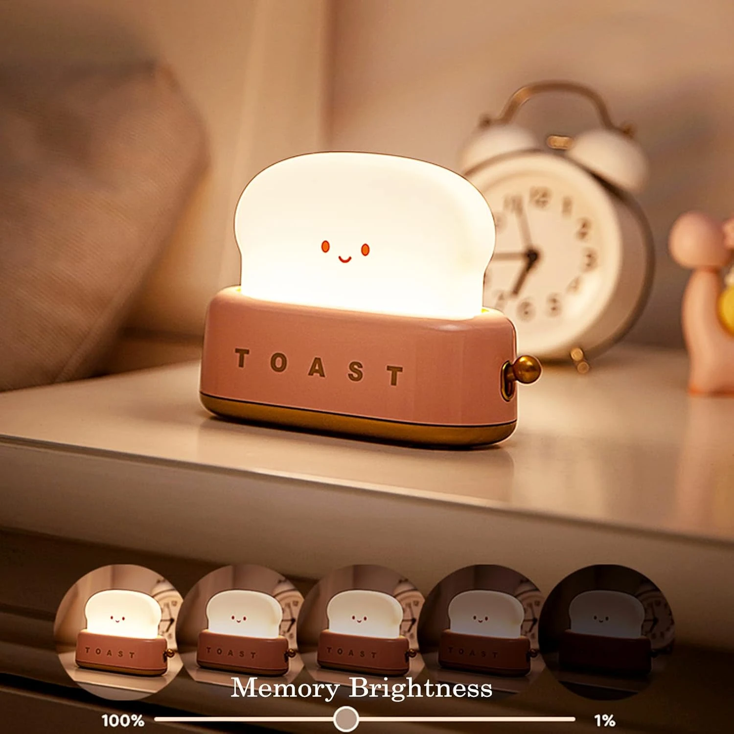 - 【Timer & Dimming Function】: This cute toaster light has a built-in 15-minute timer and has five adjustable brightness modes design that gradually increase from low to high. The night light can be adjusted from 1%-100% brightness, flip the lever to get your favorite mode.