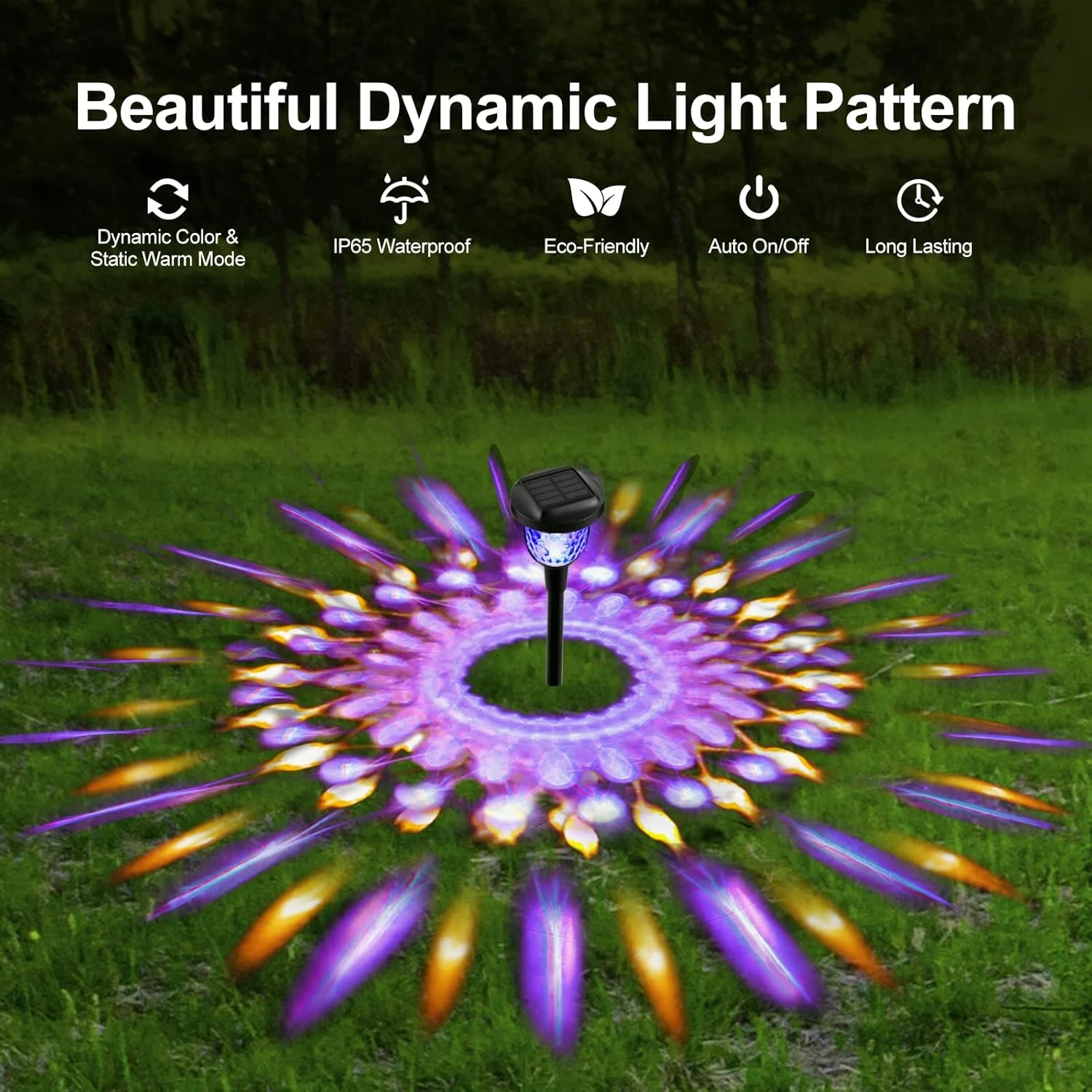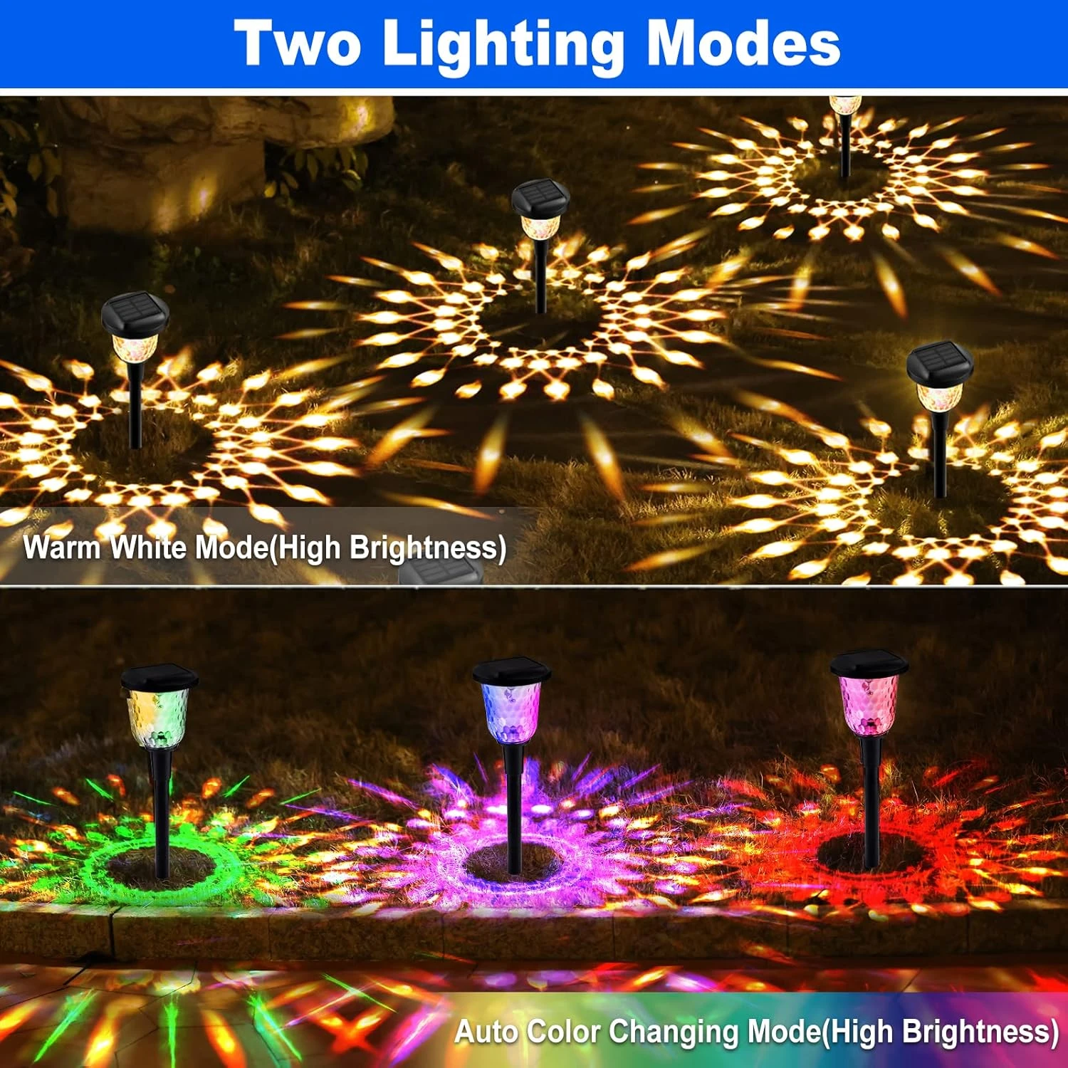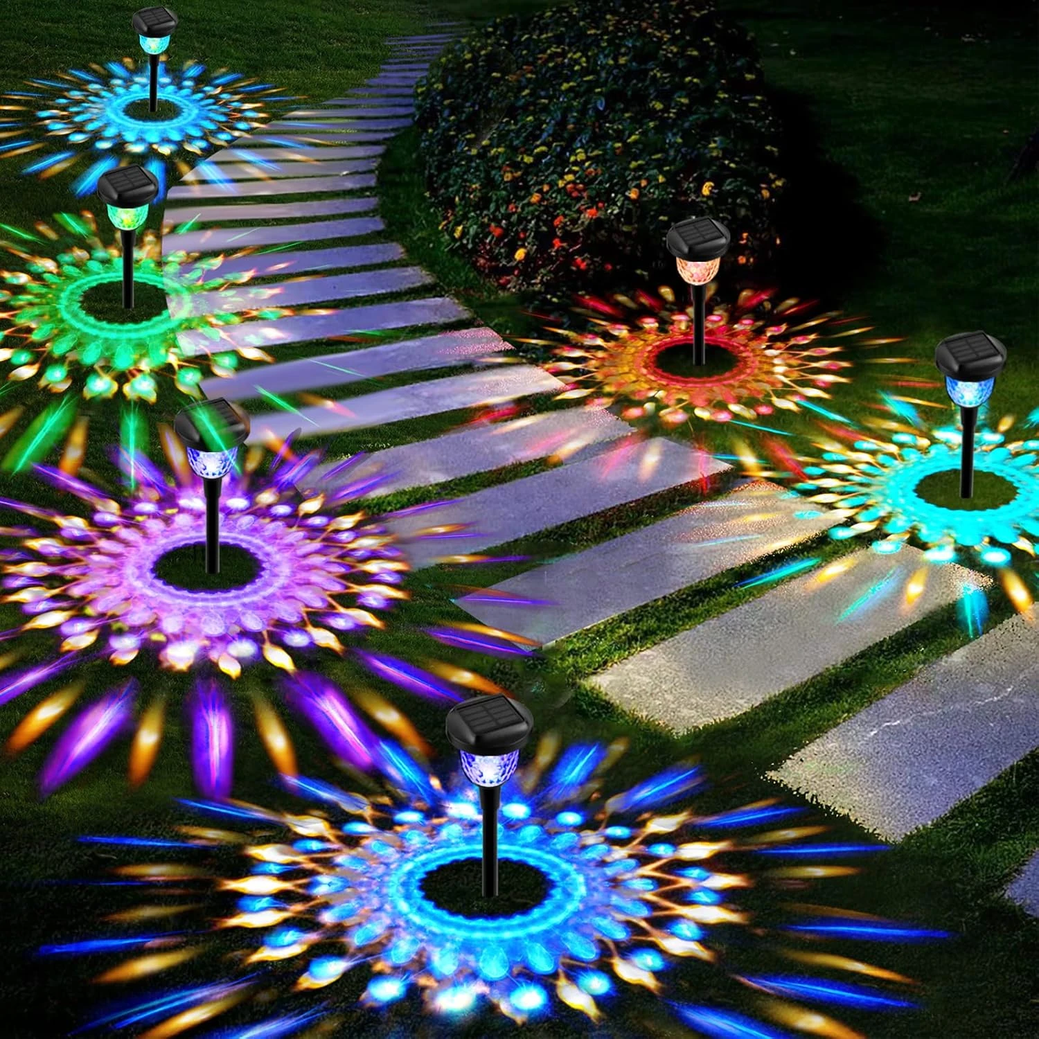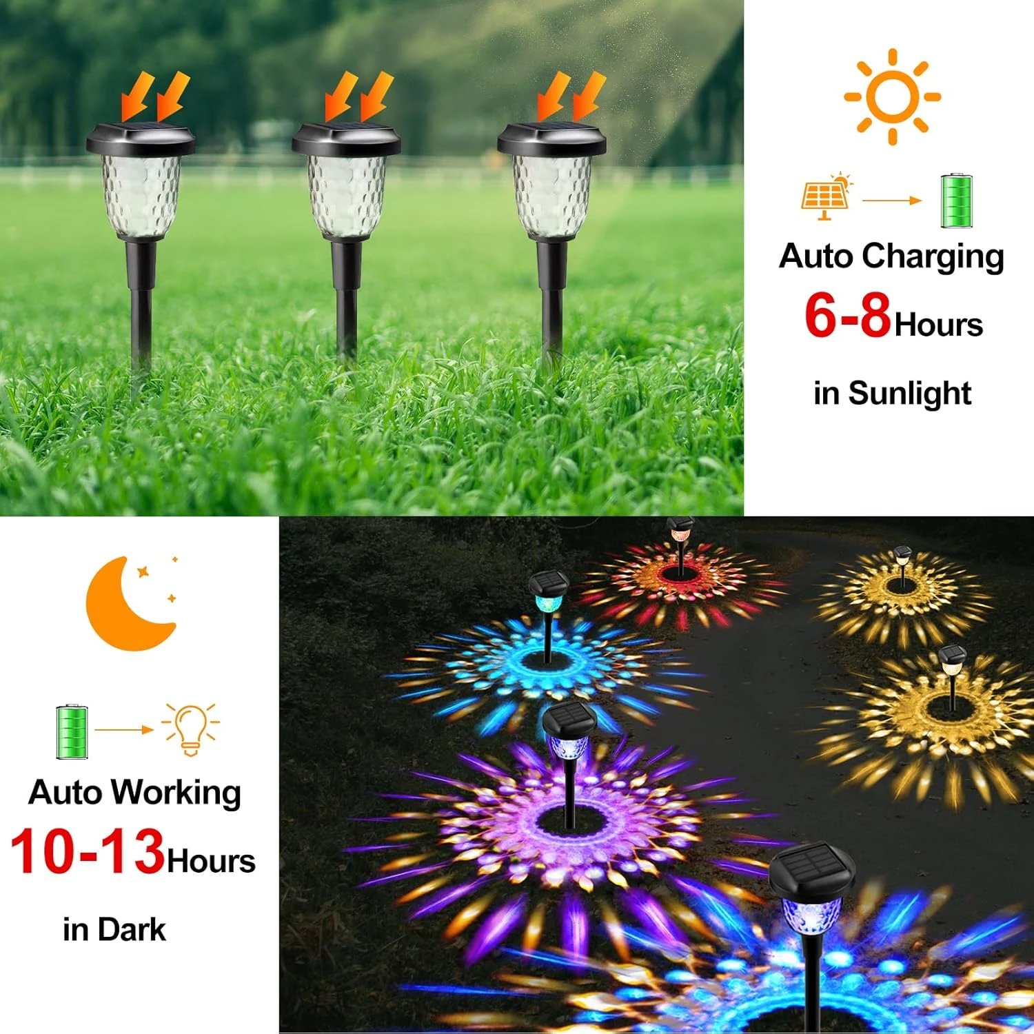 - AUTO ON/OFF ENERGY SAVING & WARM DECOR: Solar landscape lights will switch on and off automatically. It will automatically turn on the lighting in dark environment, and automatically turn off in bright environment. The LED solar landscape lighting will save your time and electricity bills. The pattern of this solar lights outdoor waterproof is also attractive; solar yard lights warm is beautiful and a perfect decoration to your backyard!