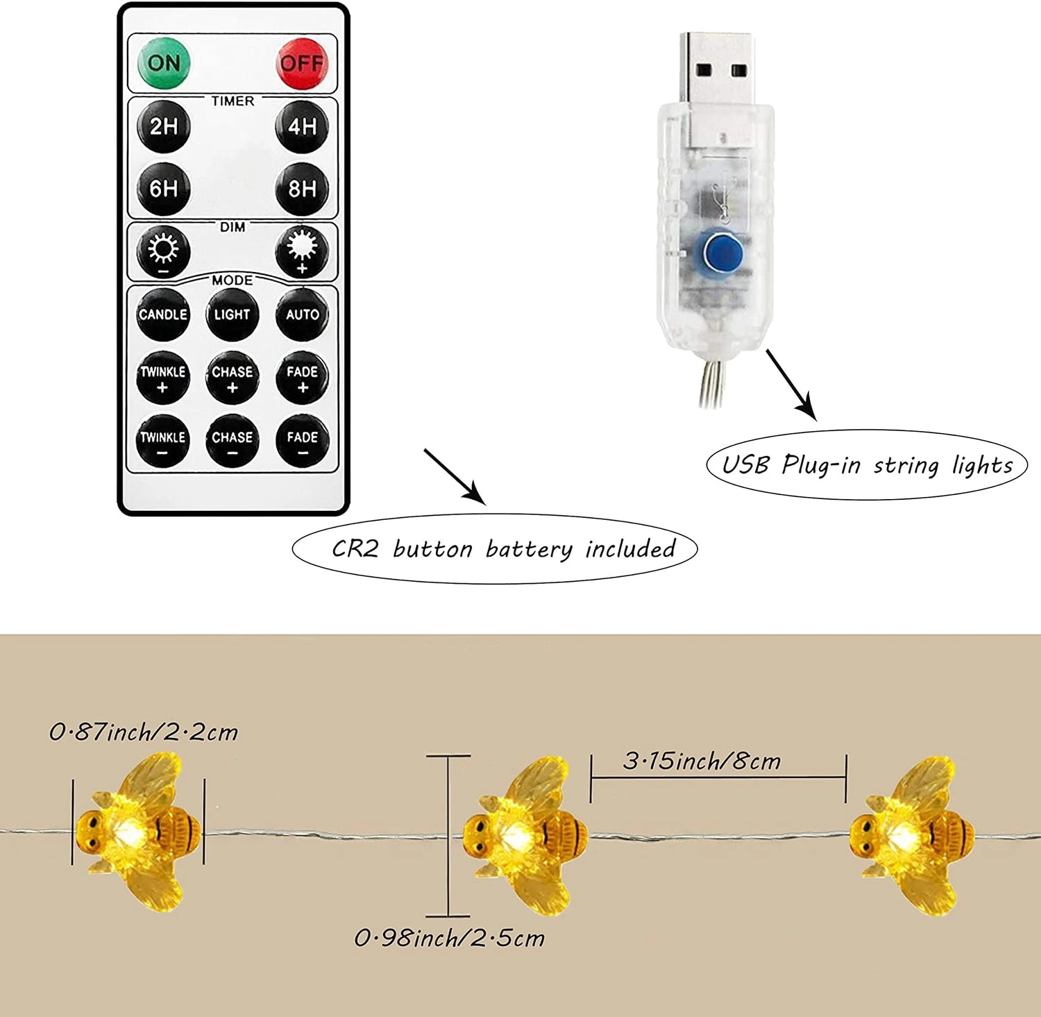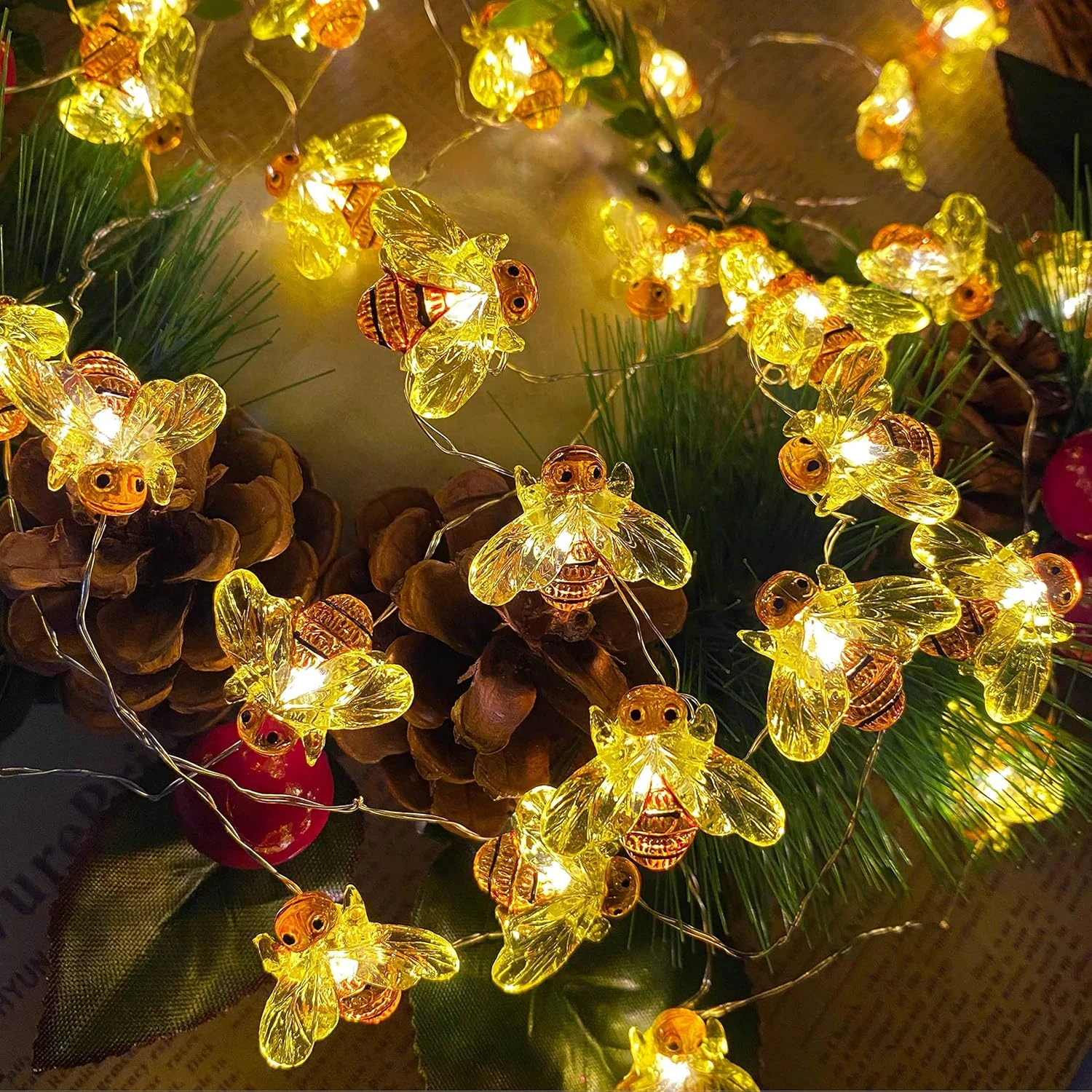 - WATERPROOF HONEYBEE LIGHTS: The string light is waterproof and designed to withstand light rain or water spills. Both for indoor and outdoor decor.