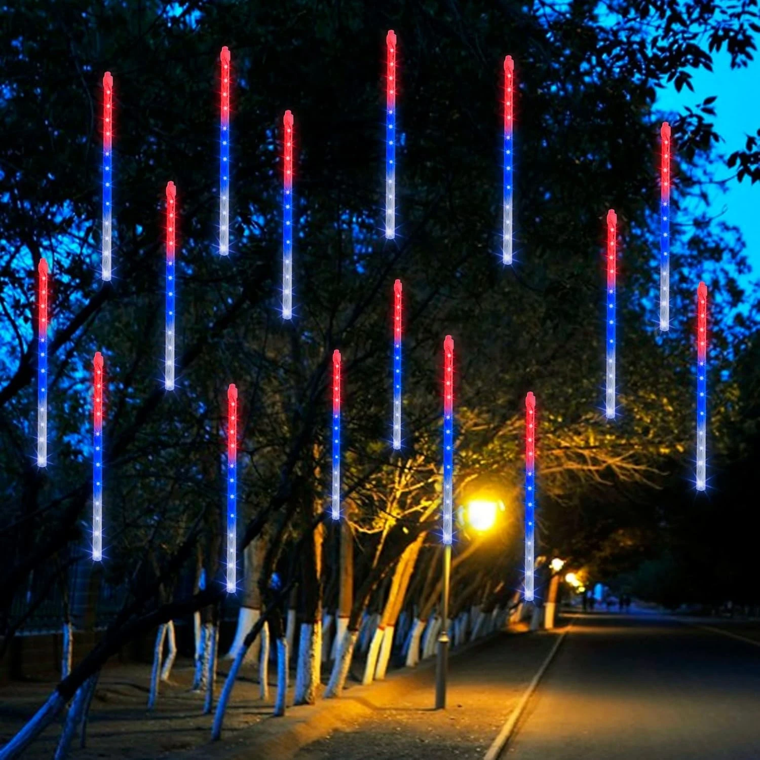 - Perfect Memorial Day Decorations: The Dazzle Bright meteor shower lights is a wonderful ornament to decorate your home, garden, patio, yard, window and courtyard well on Independence Day, very suitable for patriotic party scenes, wedding, holidays, performances, hotels, parks, restaurants.