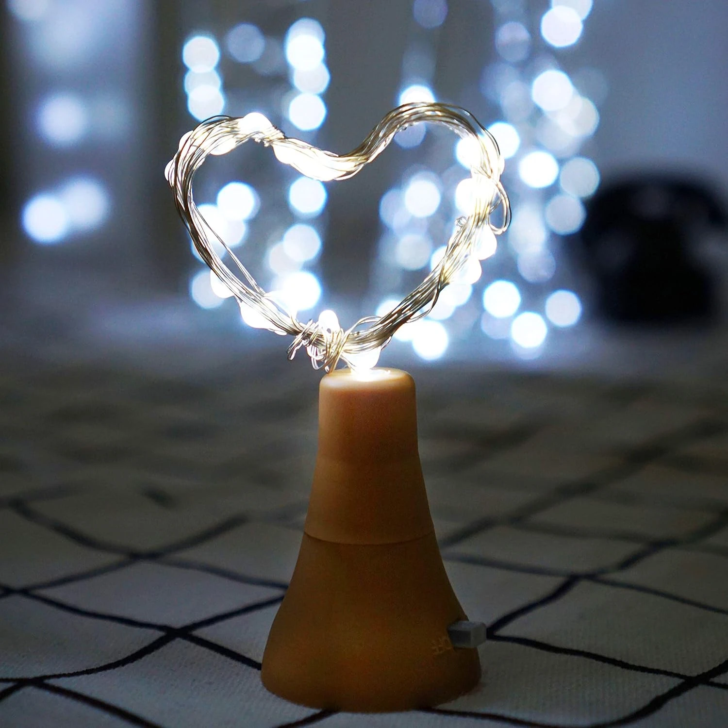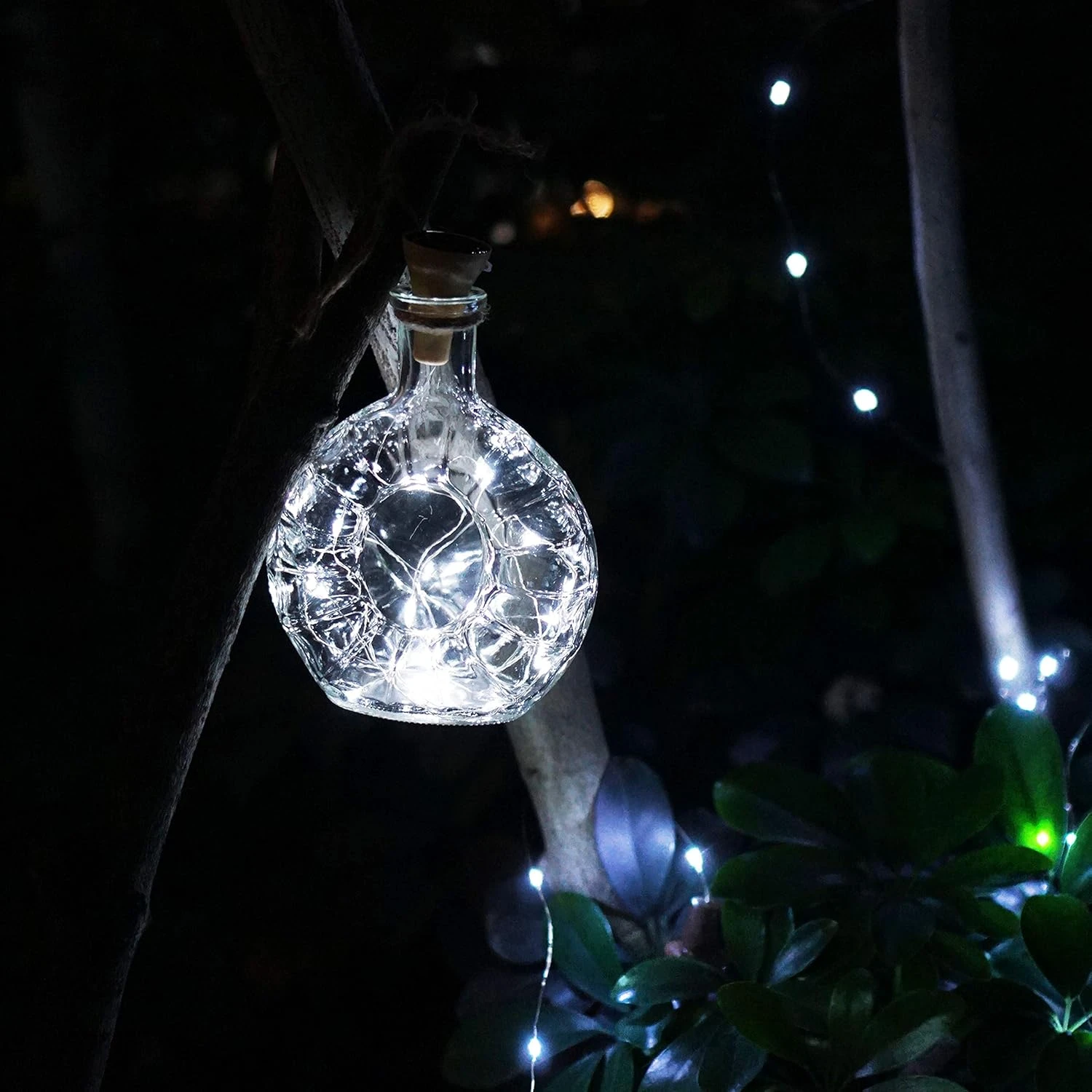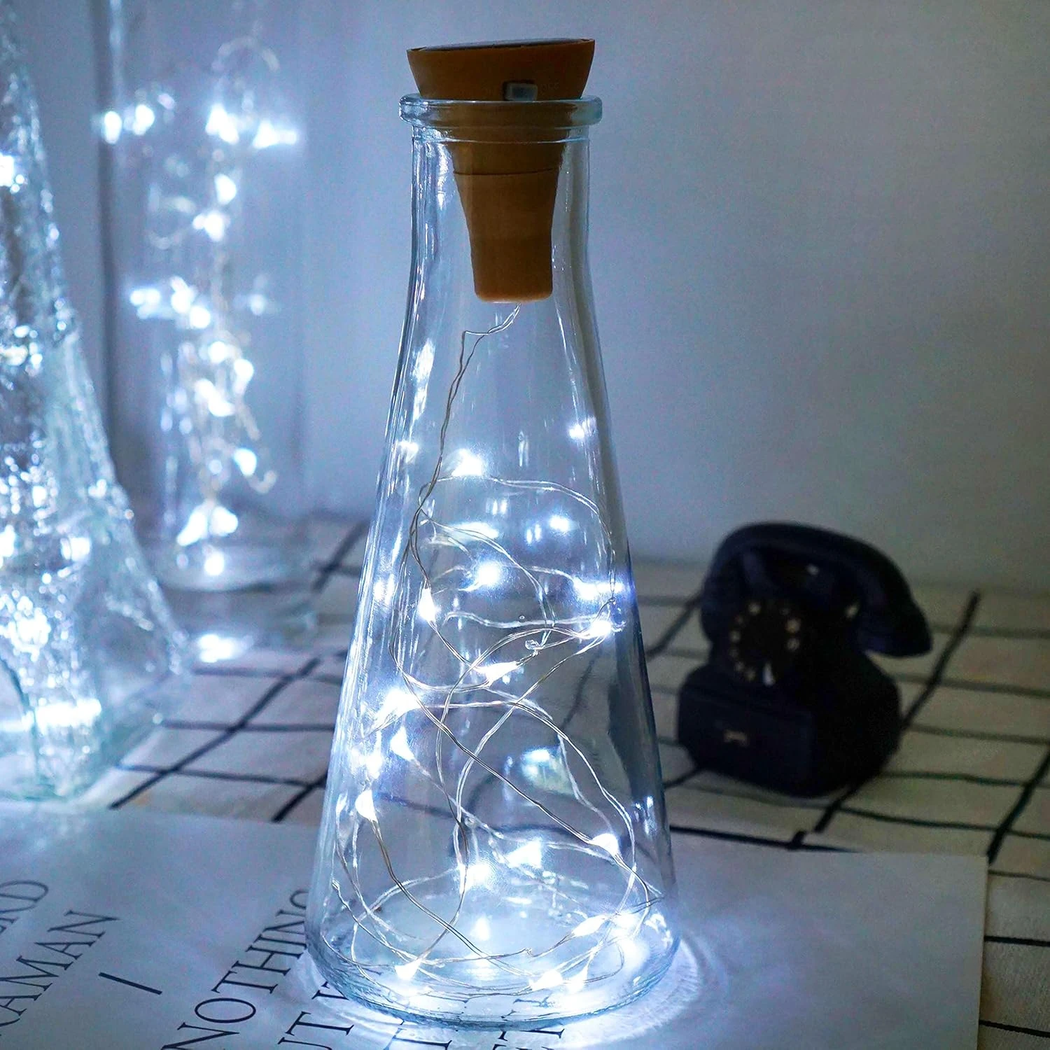 - High Quality – 20 Super bright delicate copper wired string lights and the silver wire is bendable and flexible, easy to bent and shaped, you can decorative empty bottle, Potted plants or anything as you like. And the wire lights are waterproof, so it will be absolutely safe if you want some water in the bottle (The corks are not waterproof)
