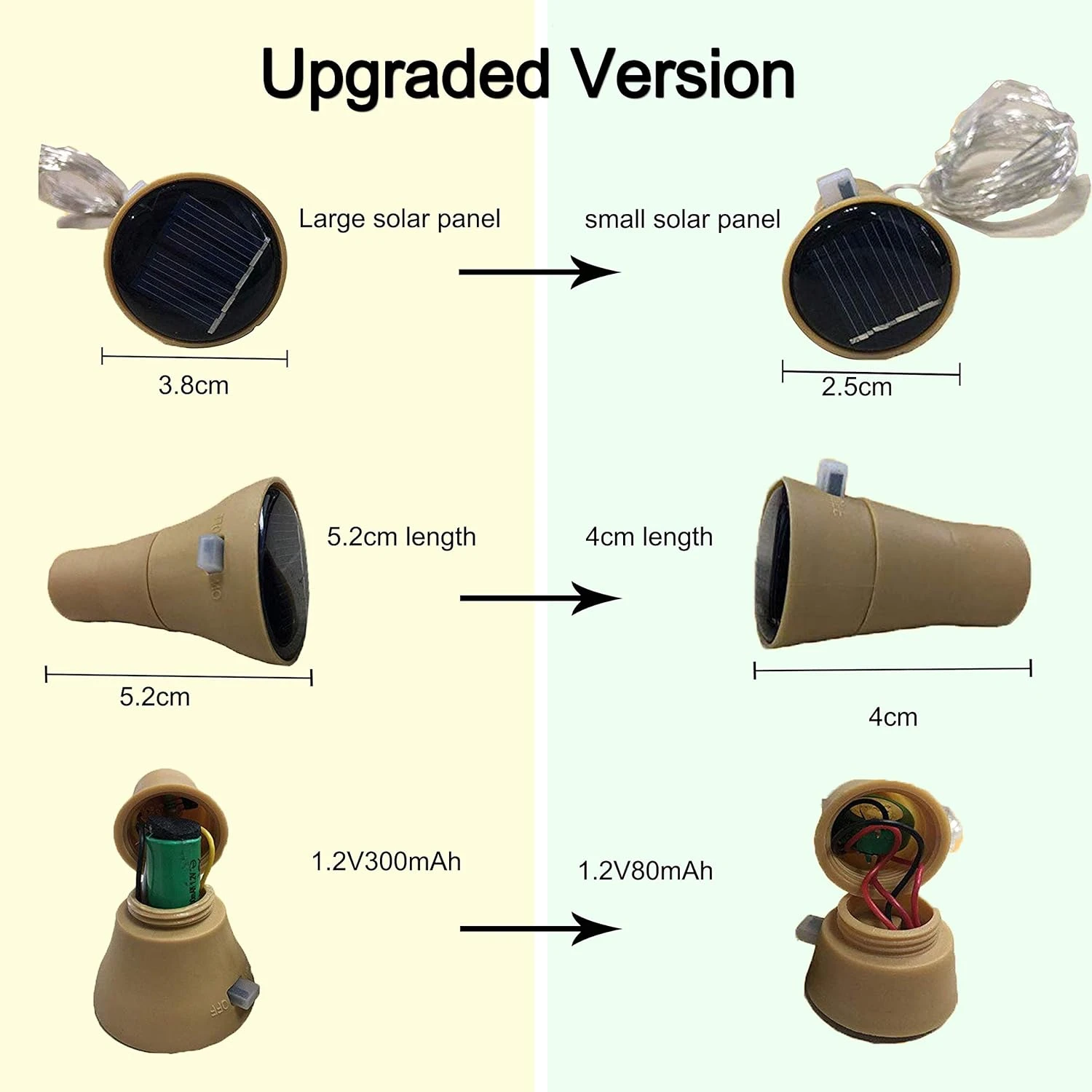 - Upgraded Cork Lights – Larger solar panel for efficient and rapid charging. 5.2cm total length, longer than other cork lights on the market, which means it suits more types of bottles. Using AAA 300mah rechargeable battery for a durable performance