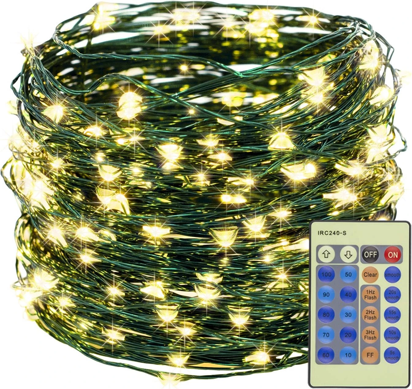- Dimmable 300LED Fairy Lights – With a 24 key remote control in hand, so easy to TURN ON/OFF; ADJUST BRIGHTNESS; SWITCH MODES from flash to smooth to steady on. DIY the best mode for your own decoration.