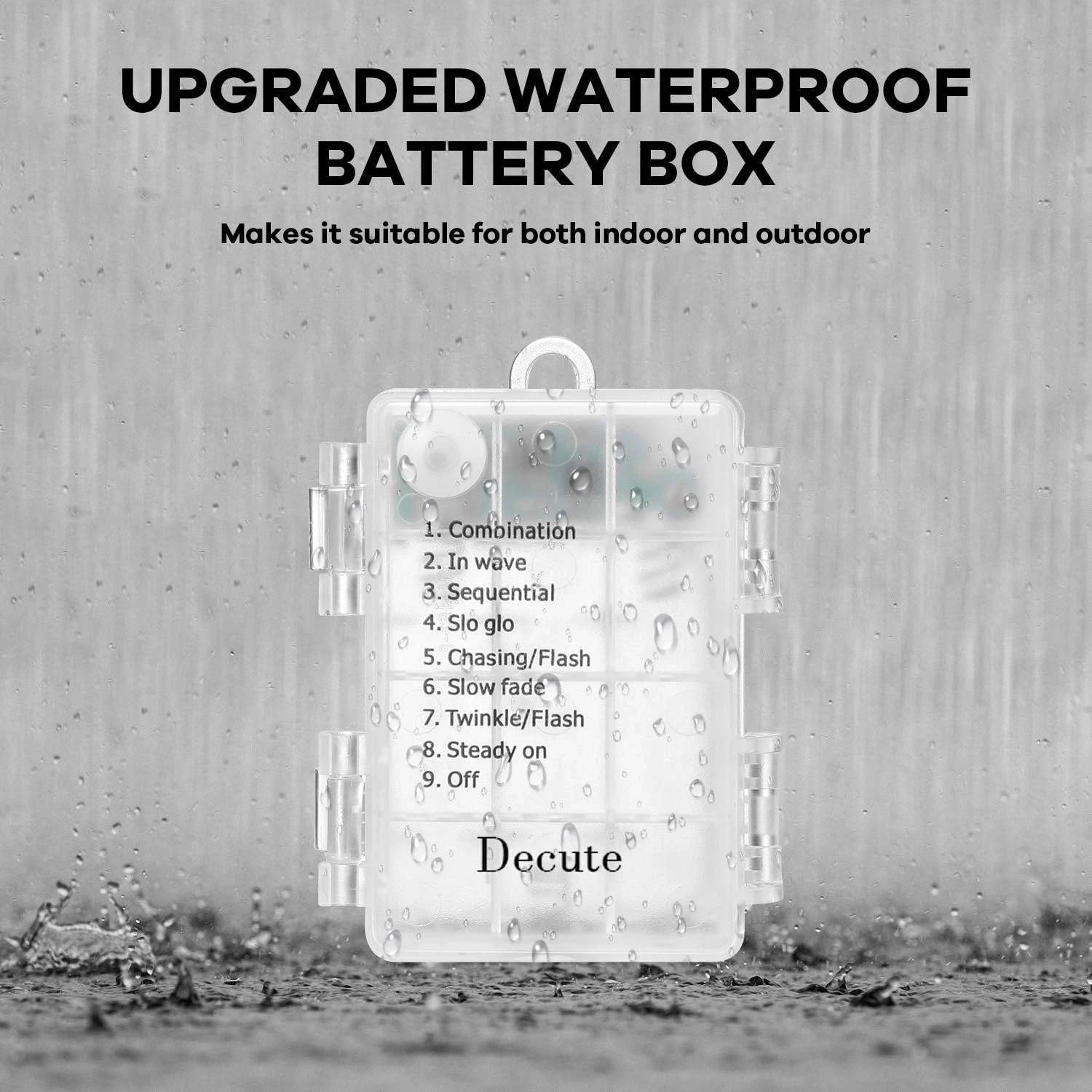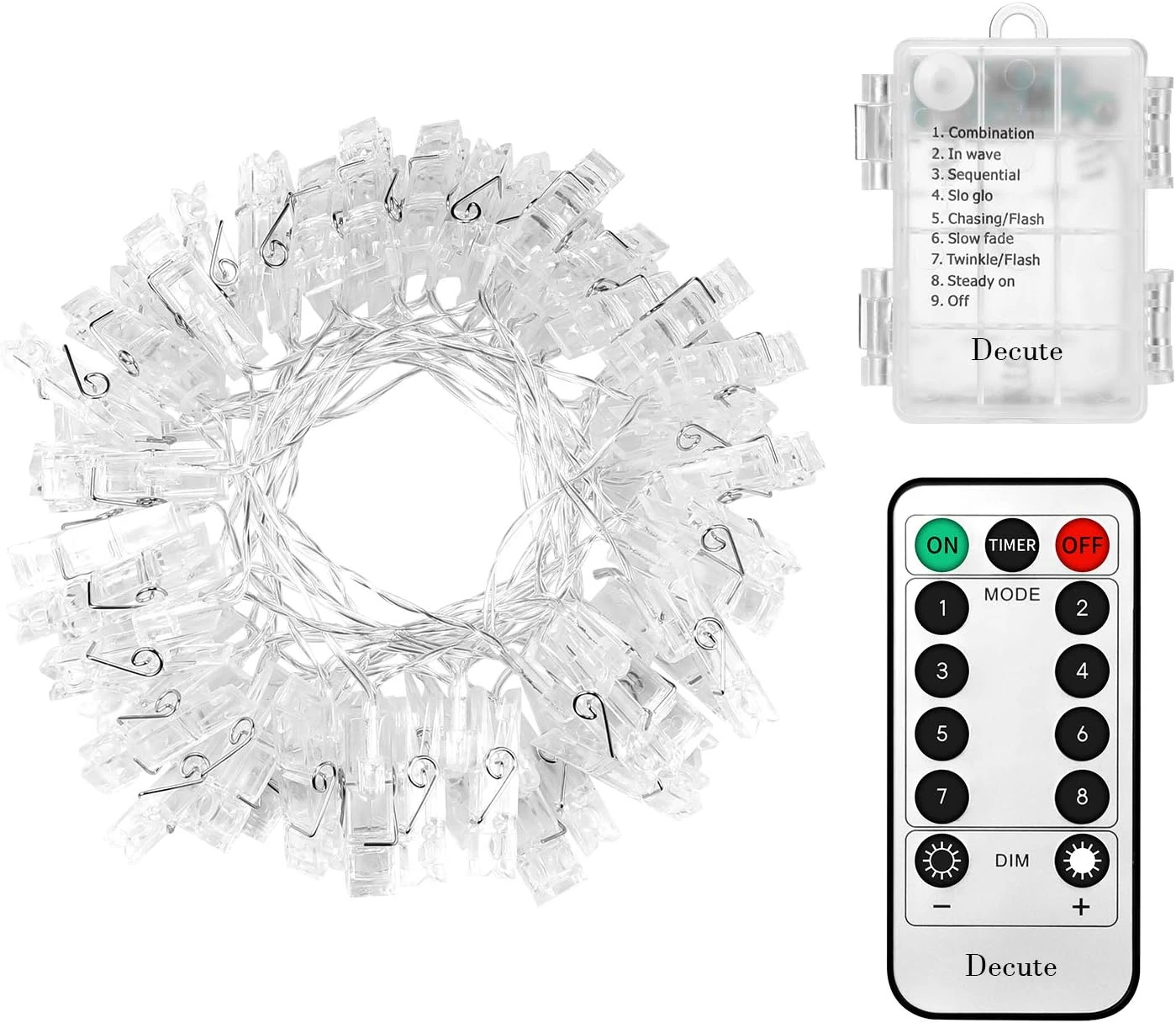 - Upgraded Version: Upgraded waterproof battery box, makes it suitable for both indoor and outdoor use. Come with 50 LED clips and 8 modes, bring you more choice and twinkle more lovely photoes.