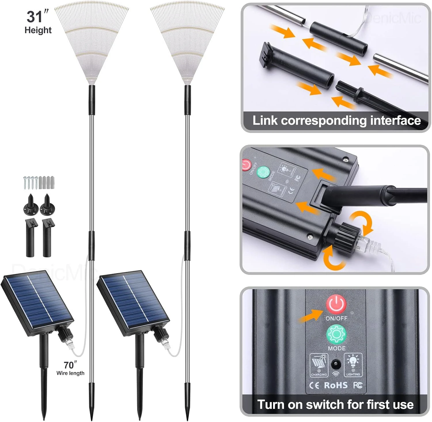 | Included Components | 2 x Wall mounted parts, 2 x Solar panel (Batteries included), 2 x Plug, 4 x Stake, 2 x Firework lights |