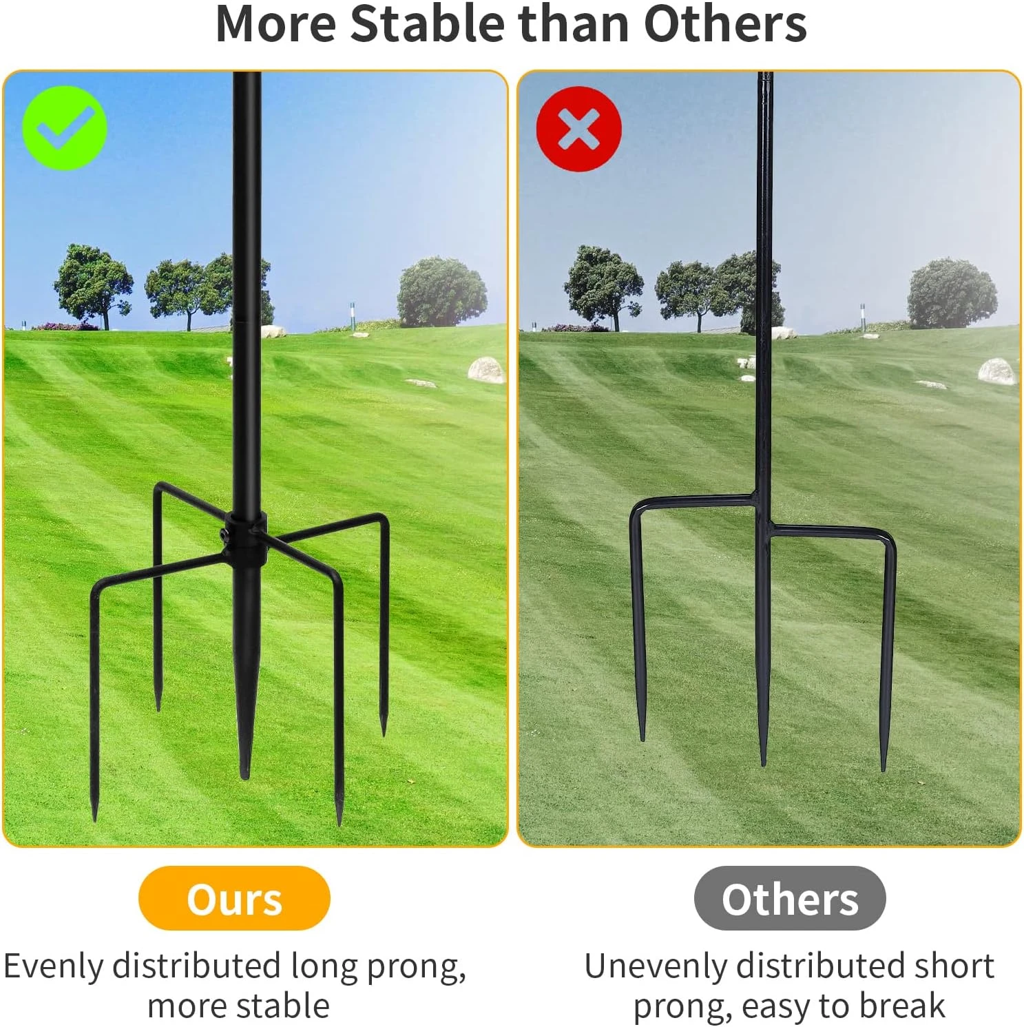 - Improved Design: 5-prong base for deeper ground insertion and adjustable wire rope for added stability in inclement weather.