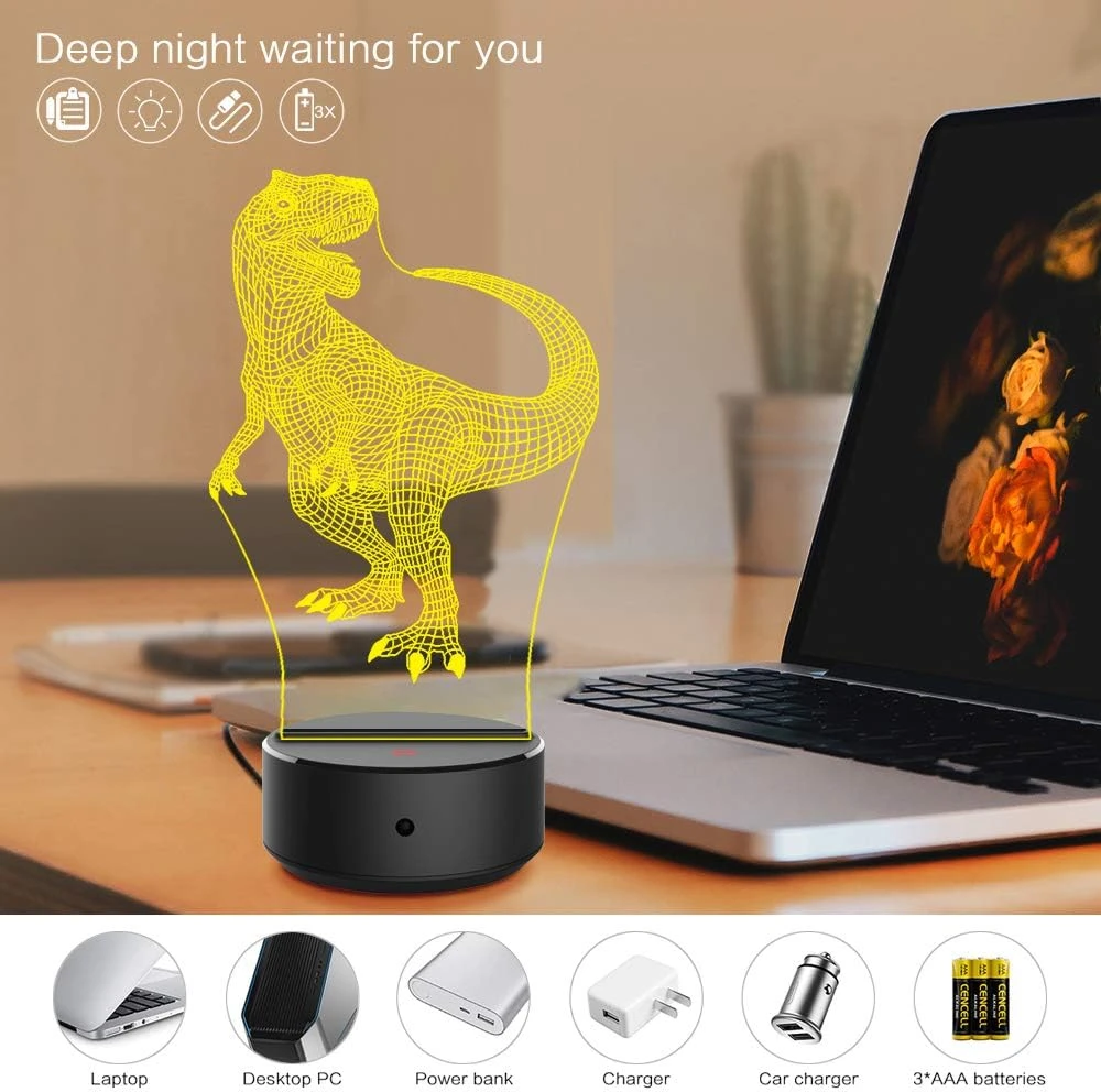 - ☆【3D VISUAL EFFECT】— Creative 3D LED illusion night light has a nice 3d vision effect. 3 Dinosaurs cool design with 3D effect is much better in the dark. One is Triceratops, one is t-rex and the other is Drepanosaurus, you can change it at any time.