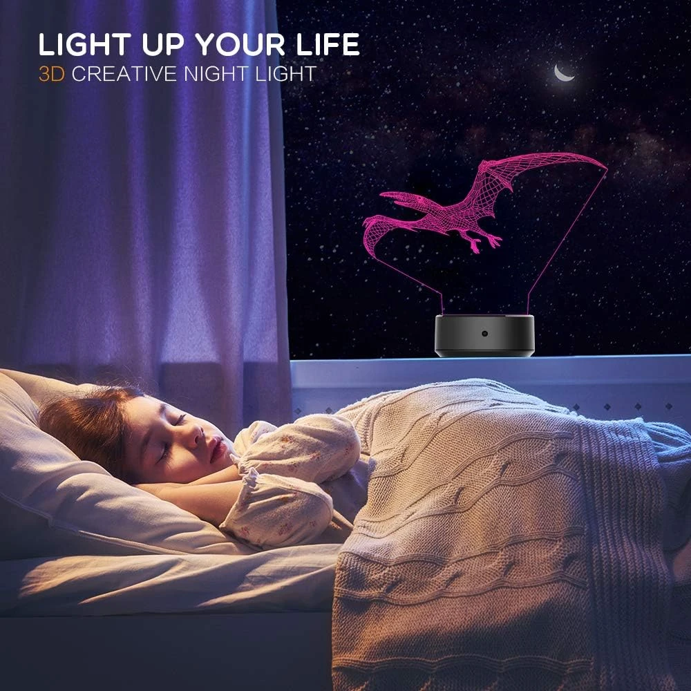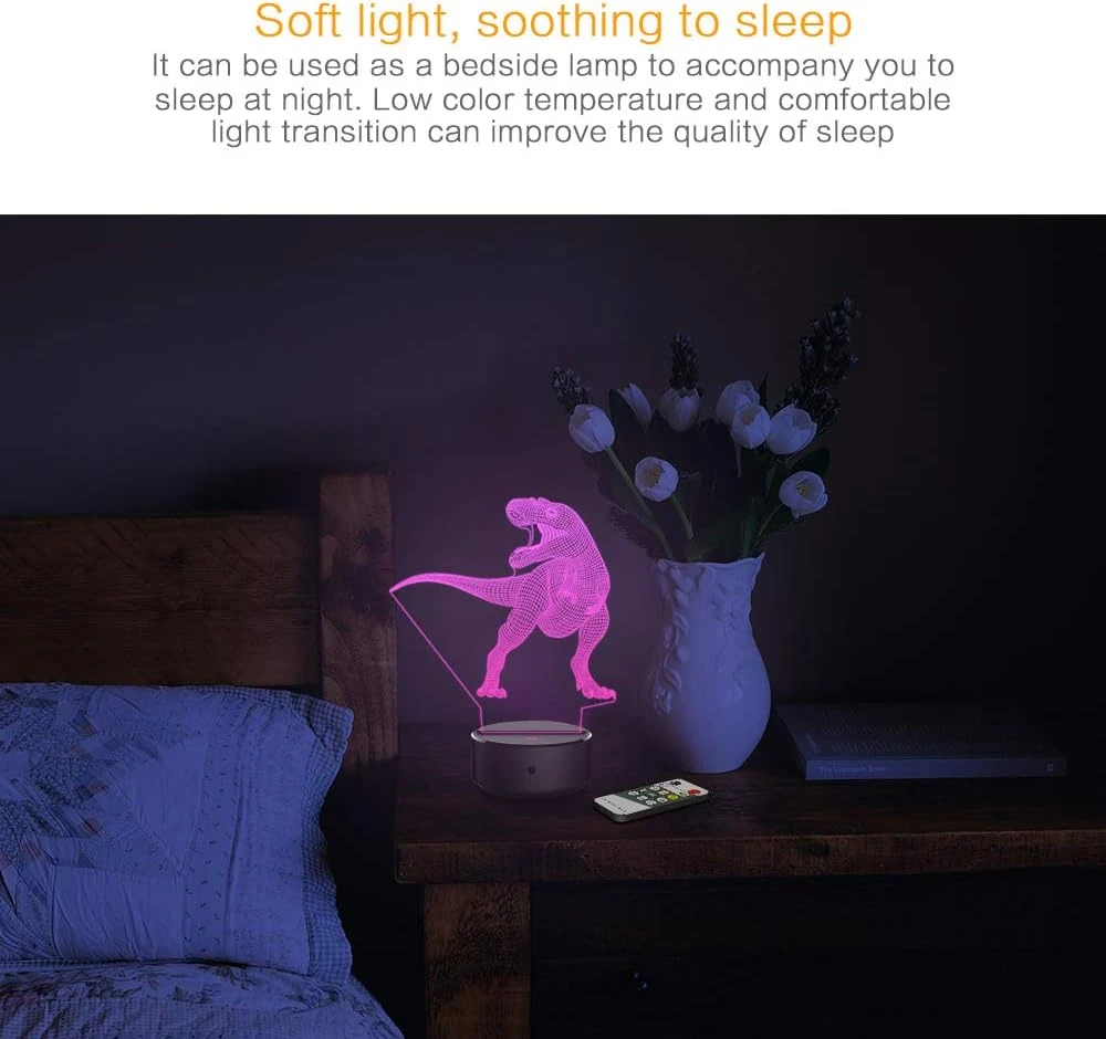 - ☆【PERFECT GIFTS AND BEST DECOR】— AmazeFan 3D Dinosaur Night Light is a new creative birthday gifts, Christmas gifts, Valentines gifts, Dinosaur lover or holiday & festival gifts for kids baby girls boys or your lover. What’s more, it can be as bedroom decoration,elegant decorations in restaurant,etc. And as a bedside lamp to give your kids / baby a sweet & warm sleep as well.