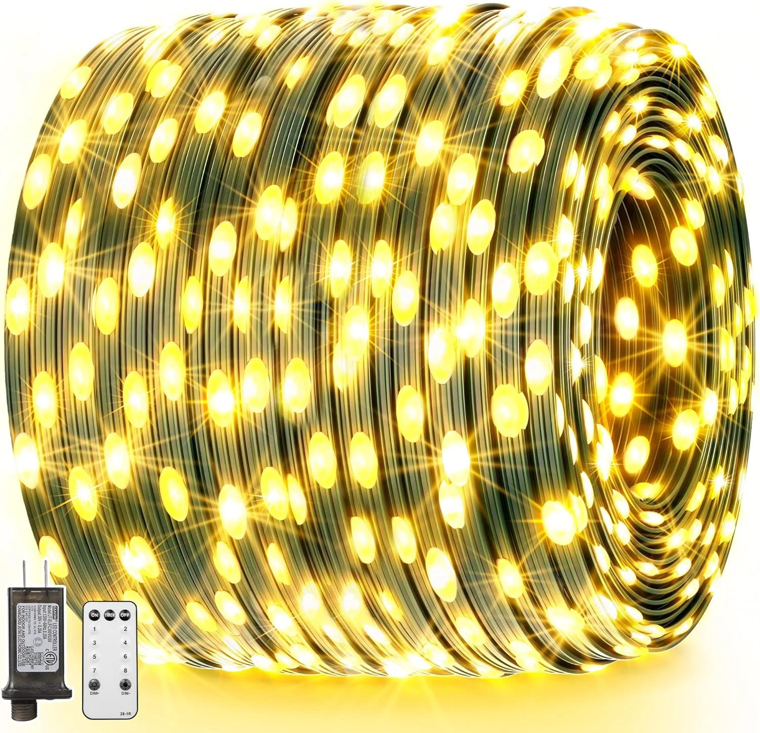 - 【Upgraded Durable & Untangled 1500 LED Christmas Lights Outdoor】492FT Upgraded with tangle free green PVC intensified cord, epoxy wrapped LED beads, better waterproof and not easy to break. The dark green cable can be well hidden at night,You can bend and shape it around almost anything, such as Christmas trees, plants, flowers, sign, balcony and so on.