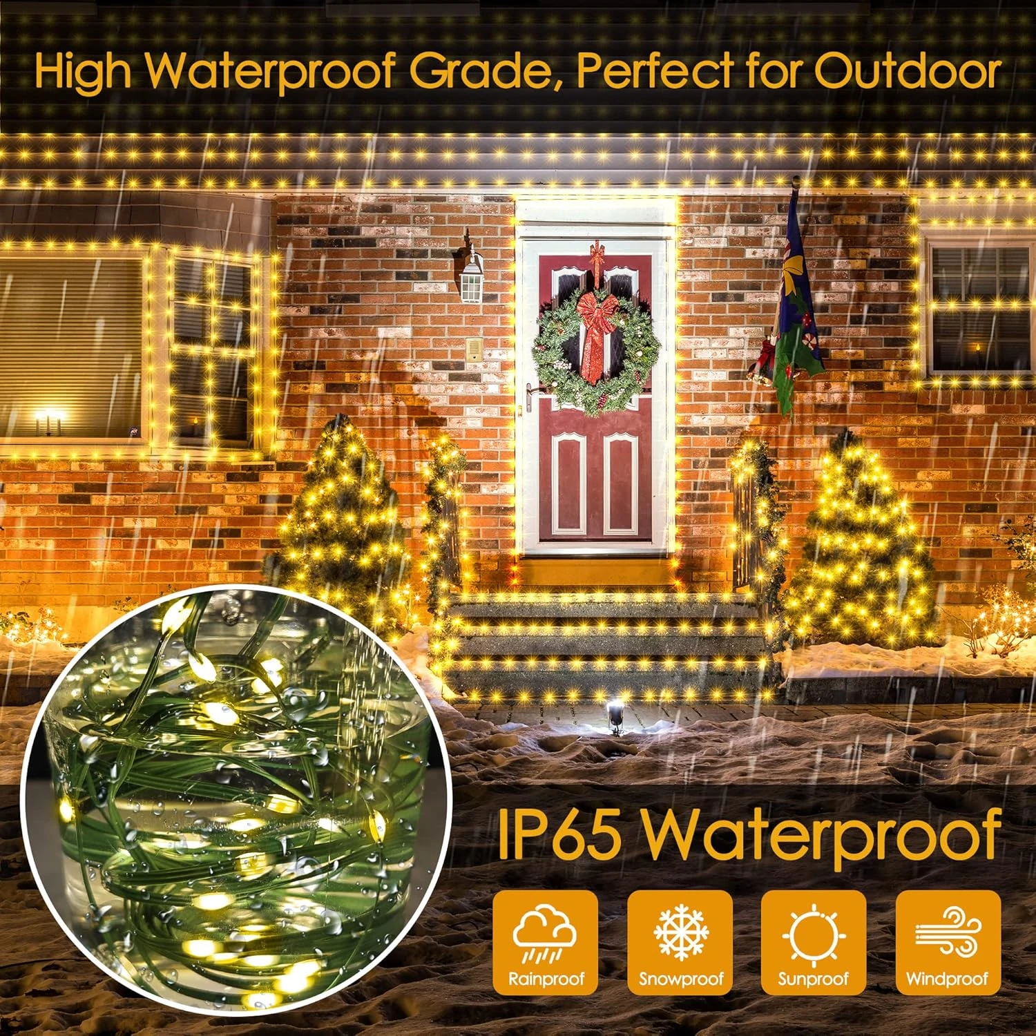 - 【IP67 Waterproof Garden Warm White Christmas Lights Outdoor】Our outside string christmas lights with IP67 waterproof deasign resist rain, snow & frost, great for indoor and outdoor.You don’t need to worry about the bad weather affecting your mood to celebrate Christmas with your family.