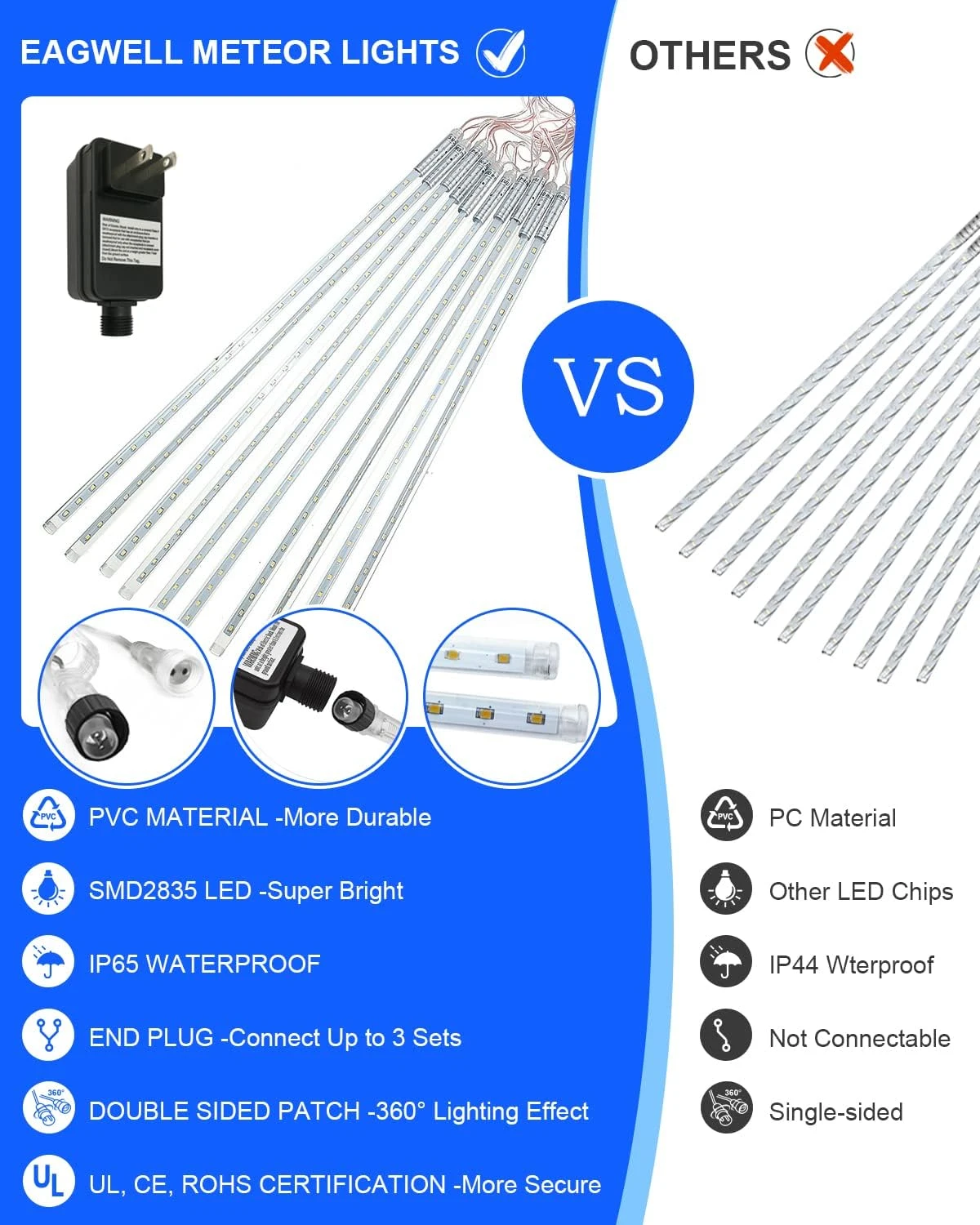 - 【PERFECT GIFT】Eagwell meteor shower lights are the perfect gift for your family and friends. They will love the stunning visual display and the festive atmosphere created by these lights. Give them as a gift for Christmas, Halloween, or any other occasion, and make their day special!