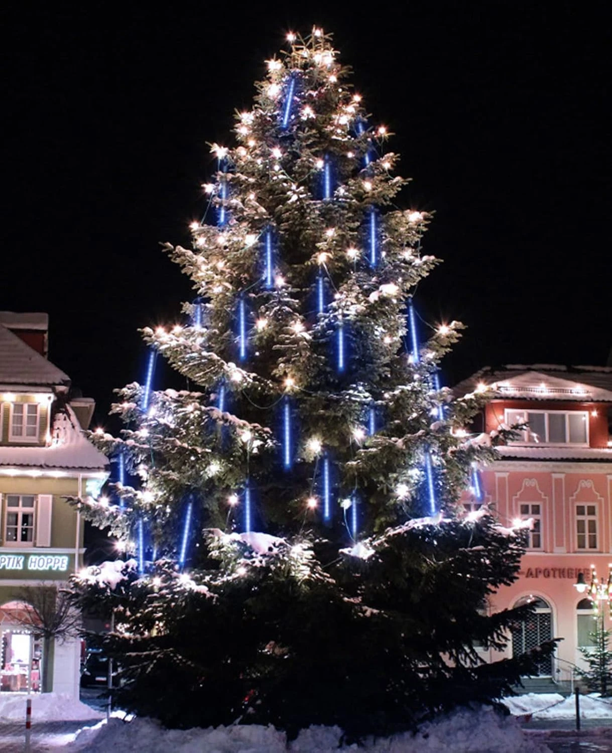 - 【SECURE & RELIABLE】Our meteor tree lights are built with weatherproof technology that can withstand all kinds of bad weather. They are corrosion-resistant, aging-resistant, and more durable, making them perfect for outdoor decoration. The UL Certification plug-in transformer is specially treated and uses low-frequency switching technology, ensuring a maximum tested shiny life of 10 years. Waterproof up to IP65, these lights are safe and reliable.
