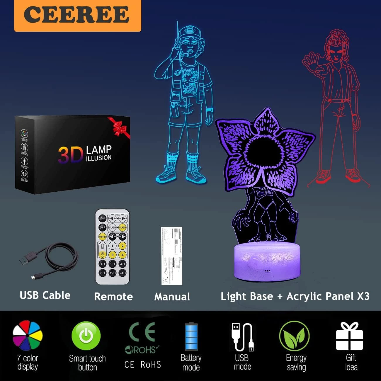 - âš¡3D Visual Illusion – this is the 3D illusion lamp that can show up the 3D image when the light glow from the lamp base, with an optical acrylic flat board with laser engraving, can give you an amazing 3D visual effect. It come with 3 patterns for you to switch from one to one.