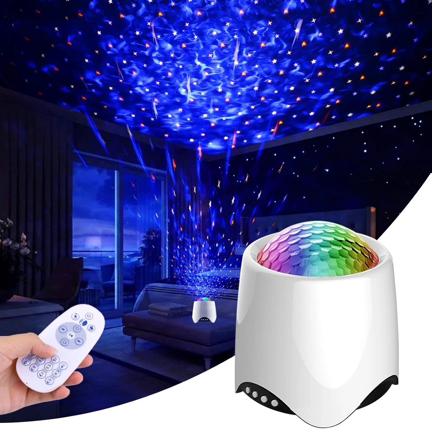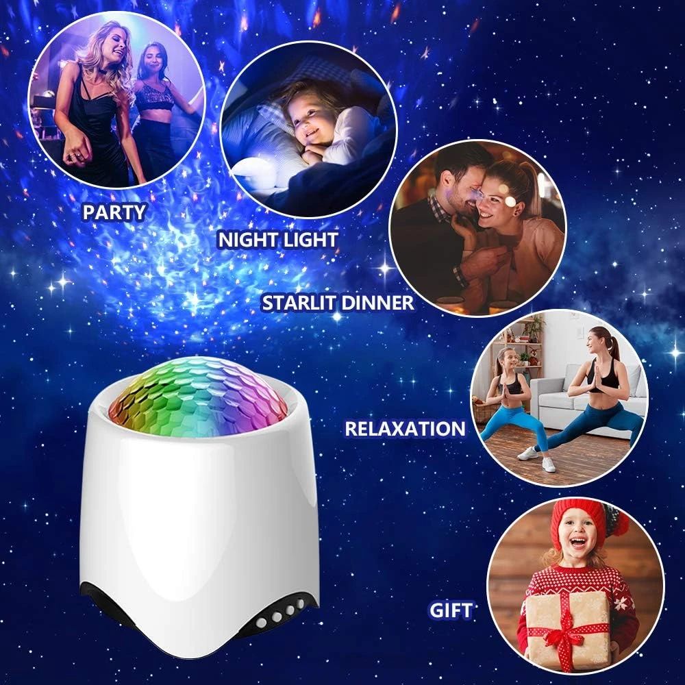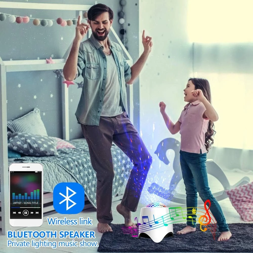 - 【3-in-1 star Projector】Star night light projector has the function of projection light, night light, music player. It is very suitable for interior decoration, such as wave projector, romantic atmosphere lamp, night light and bedside lamp. Also It is perfectly great for birthday, party, Wedding, Room decor, children’s day, Christmas, Valentine’s Day and Anniversary gifts . It creates a wonderful and starry atmosphere help children stimulate their curiosity, imagination, creativity.