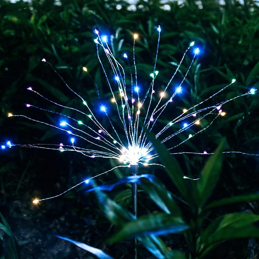 - The solar garden lights 105 LEDs powered by solar panel can be used as decoration to give a sparkly mood to your garden parties. The flexible branches can be shaped as desired.