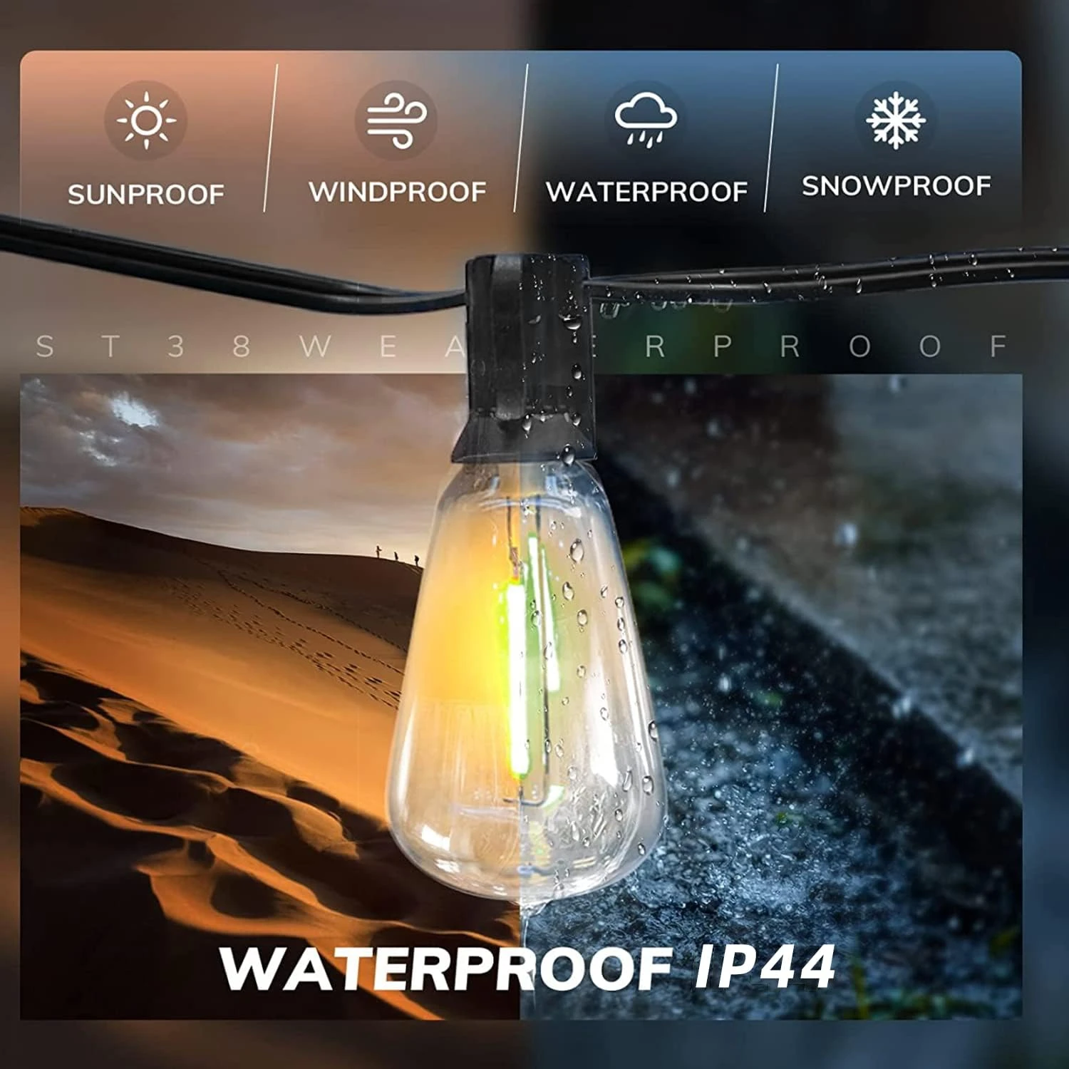- 【IP65 Waterproof & Shatterproof】- Epicflare weatherproof outdoor patio lights can withstand rain, wind, snow, and extreme degrees Fahrenheit for you to leave them outside year-round confidently. Furthermore, the bulb shells are made of hard anti-drop plastic, protect you and your family while hanging the waterproof backyard string lights, no more worries about the suddenly broken glass shards.