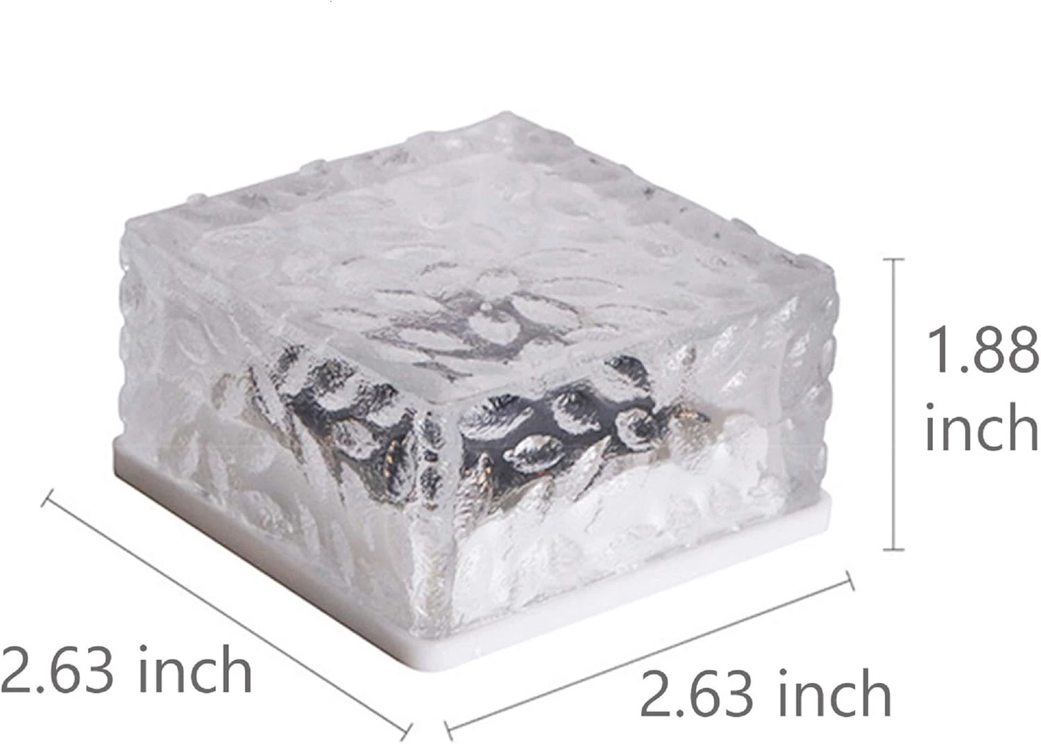 - The solar ice cube size is 2.8 x 2.8 x 2 Inches. The On/Off button is located at the brick base. Please don’t put them into water directly. This solar brick light is not submersible.