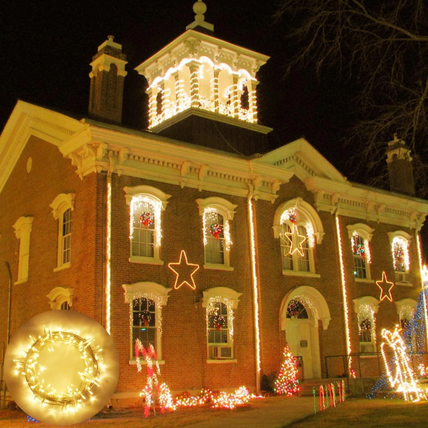- [Safe with ETL Certification]: With ETL approved adaptor, you can use this Christmas lights with no worry. The input for power adapter is 120V~50/60Hz 0.25A, and output is 29V 0.124A 3.6W, It is safe for use without worry of a sire hazard.