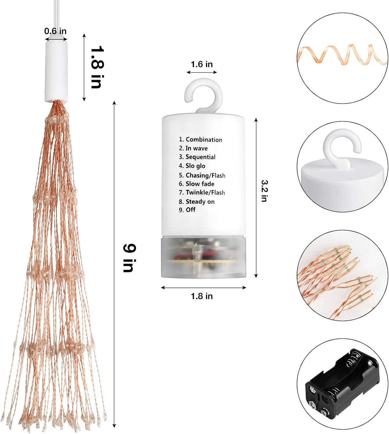 - ★ Remote Control & Timmer – Wireless remote control, effective receiving range is 10-15 meter, requires 4 x AA Batteries (Batteries NOT Included). Battery hanging light get rid of the socket control, you can put it wherever you need it. And set timer by pressing the TIMER button, the string lights will be 6 hours on and 18 hours off per day.