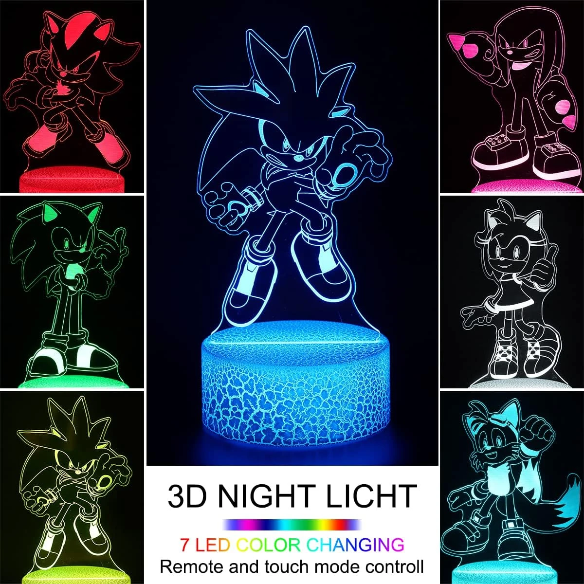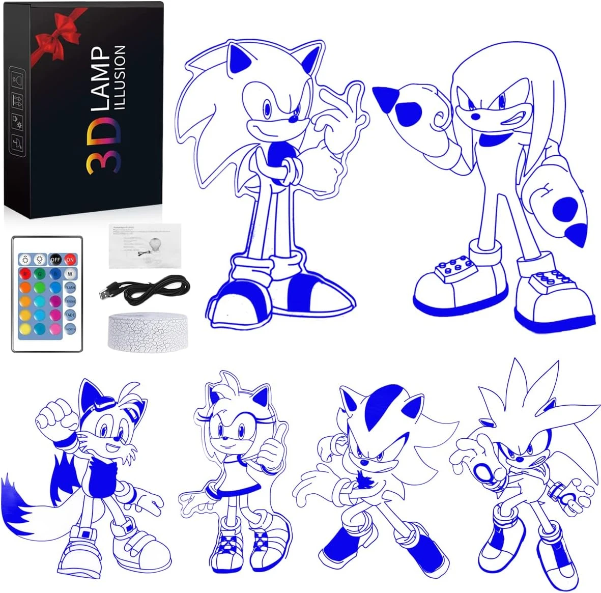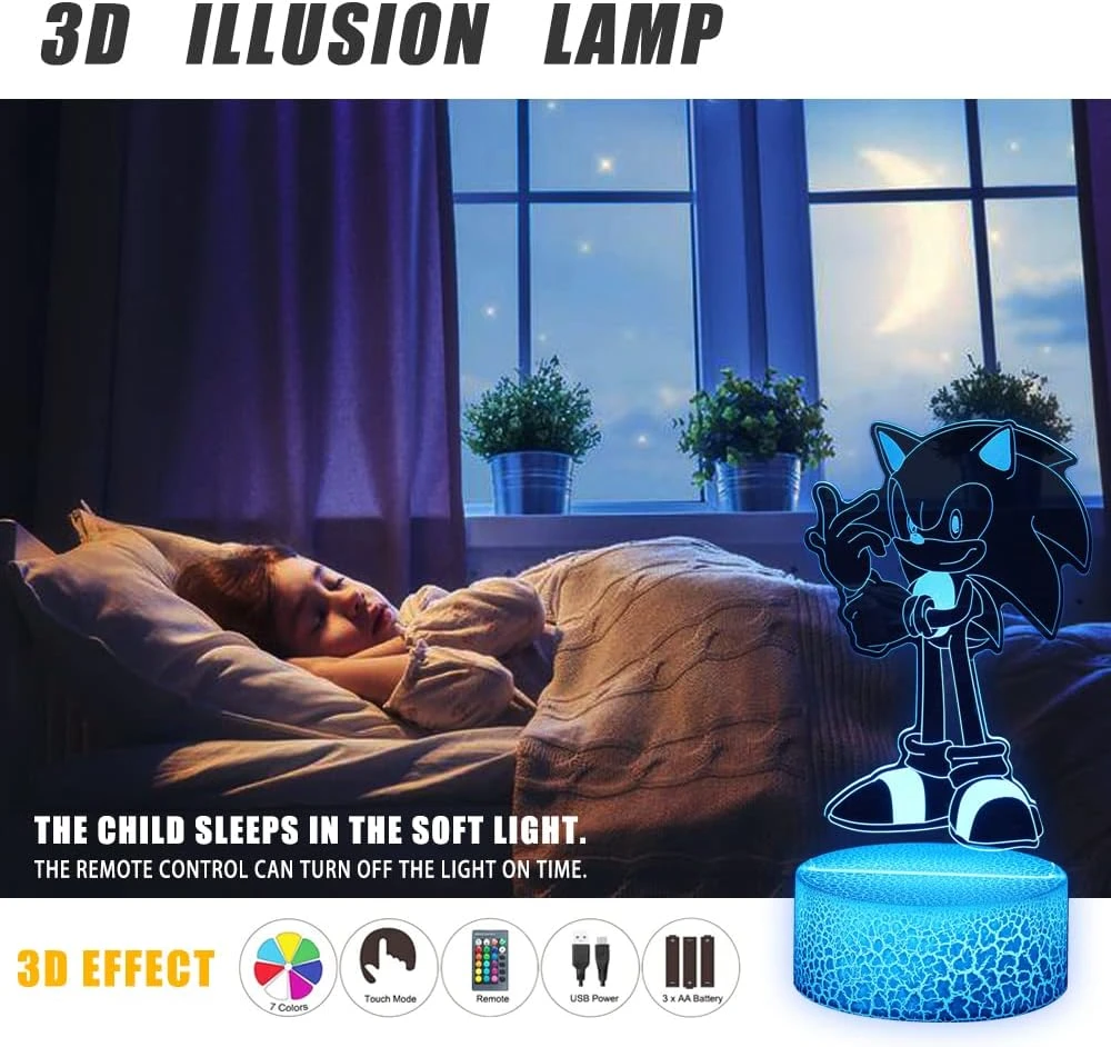 - 3D Night Light Include: 6 Acrylic Sheets, 1 Seven Color Touch ABS Bases, 1 Remote Control, 1 USB Cables and a User Manual.