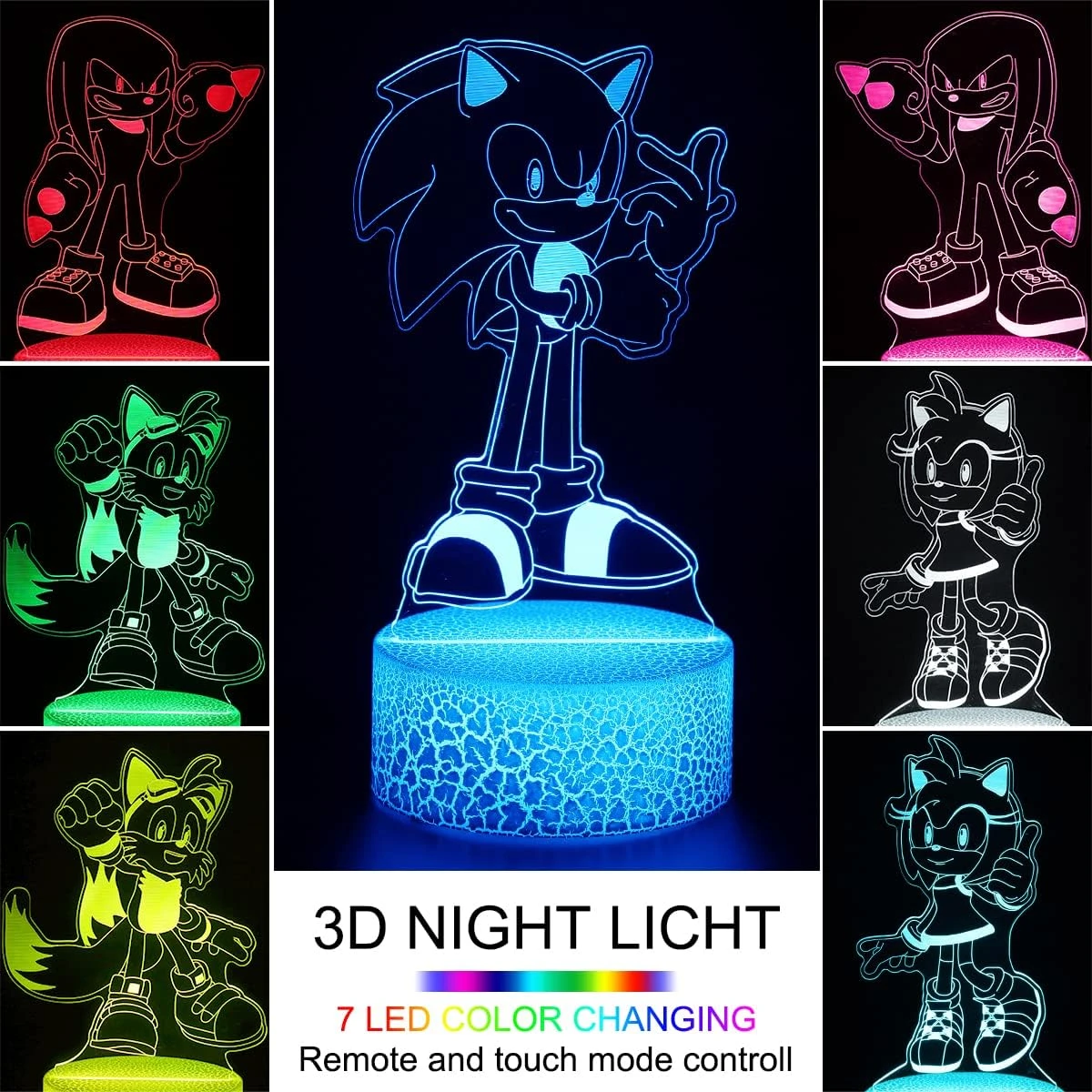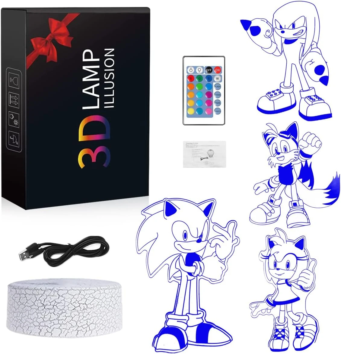 - 3D Night Light Include: 4 Acrylic Sheets , 1 Seven Color Touch ABS Bases, 1 Remote Control, 1 USB Cables and a User Manual.