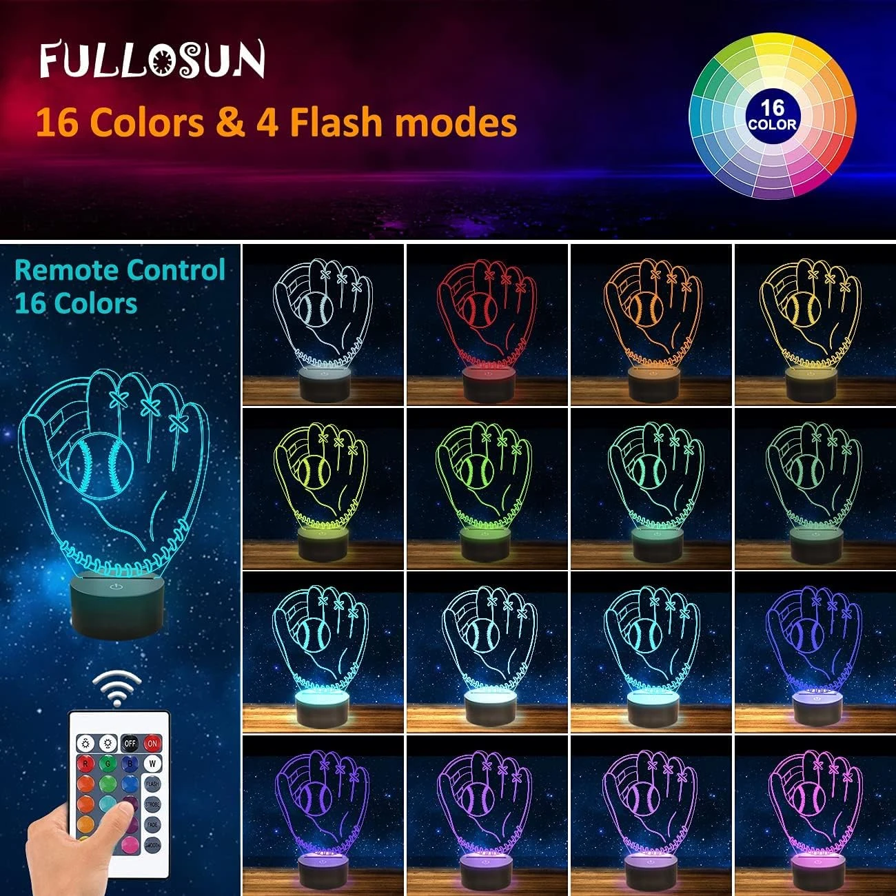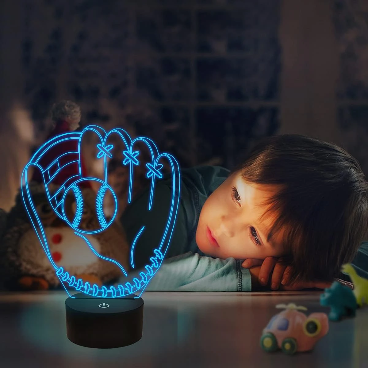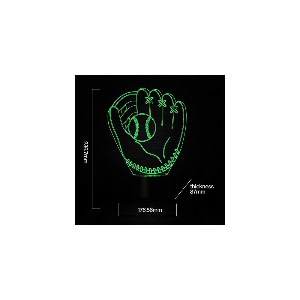 - ❖ CREATIVE AND INTERESTING 3D NIGHT LIGHT: This is an 3D illusion lamp can show up the baseball glove when it light up, with an optical acrylic flat board with laser engraving can give you amazing 3D whale visual effect.