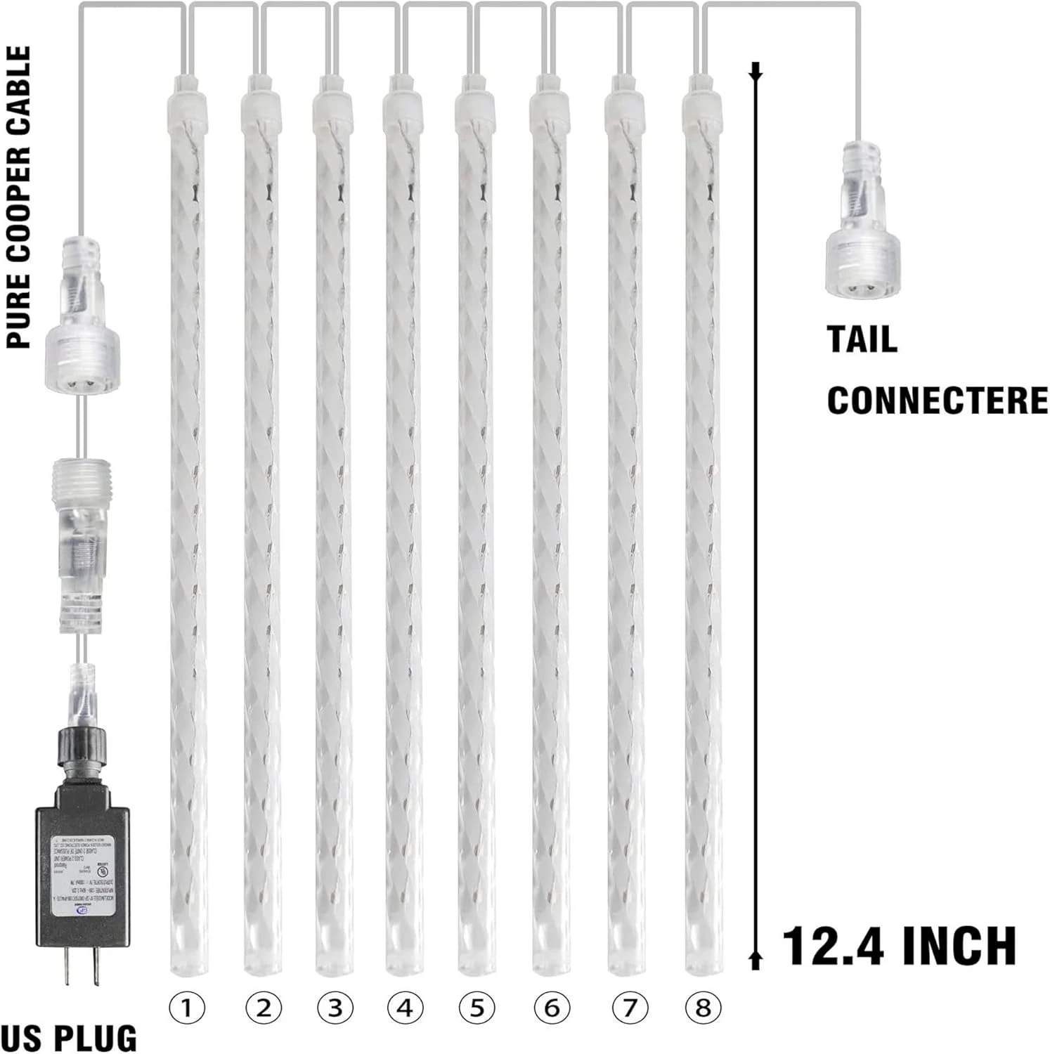 - Waterproof: The waterproof level of this Independence Day meteor shower lights is IP65, suitable for indoor and outdoor use. UL certified, the voltage is 7V, which is lower than the safety voltage of the human body, and there is no risk of electric shock.