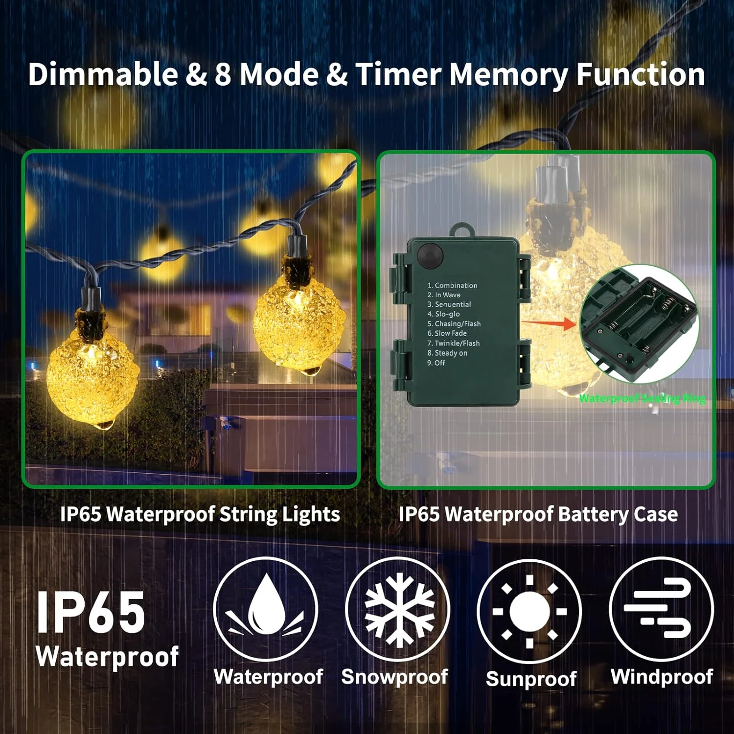 | Included Components | 1* 39ft 80LED Globe Crystal string lights, 1* Battery case, 1* Manual, 1* Remote Controller |
