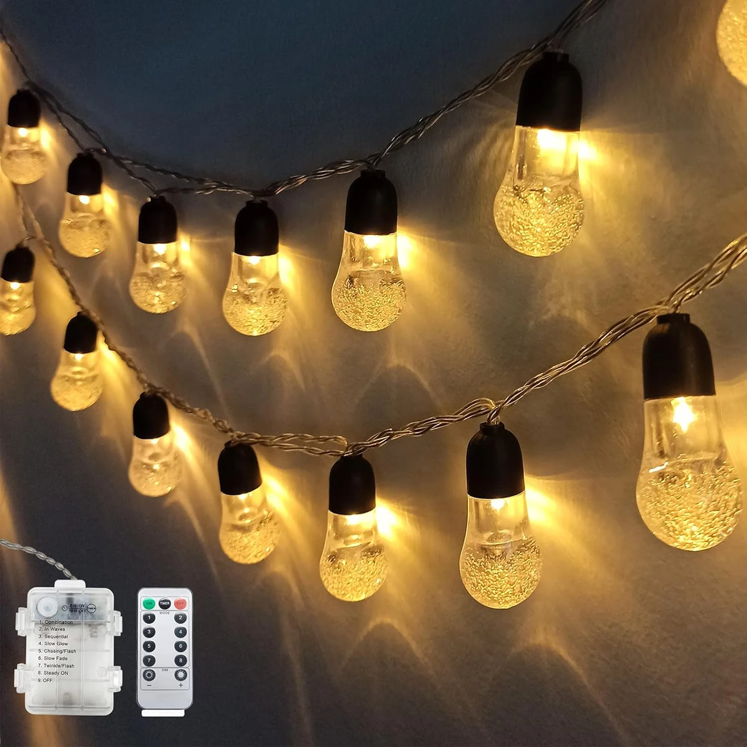 - 【Battery Powered Led Outdoor String Lights】Outdoor string lights battery operated requires 3 AA batteries (not included). The small battery pack is easy to hide and makes these porch lights outdoor string extremely portable.