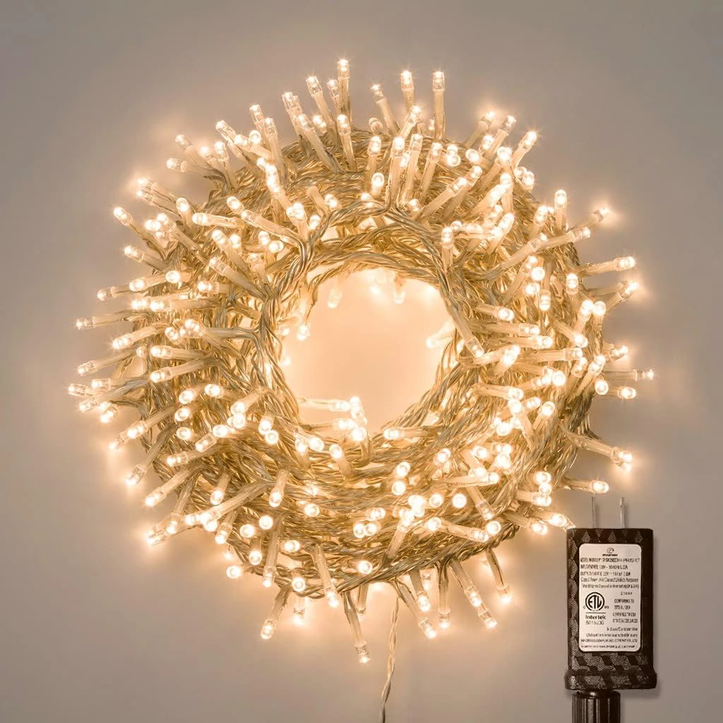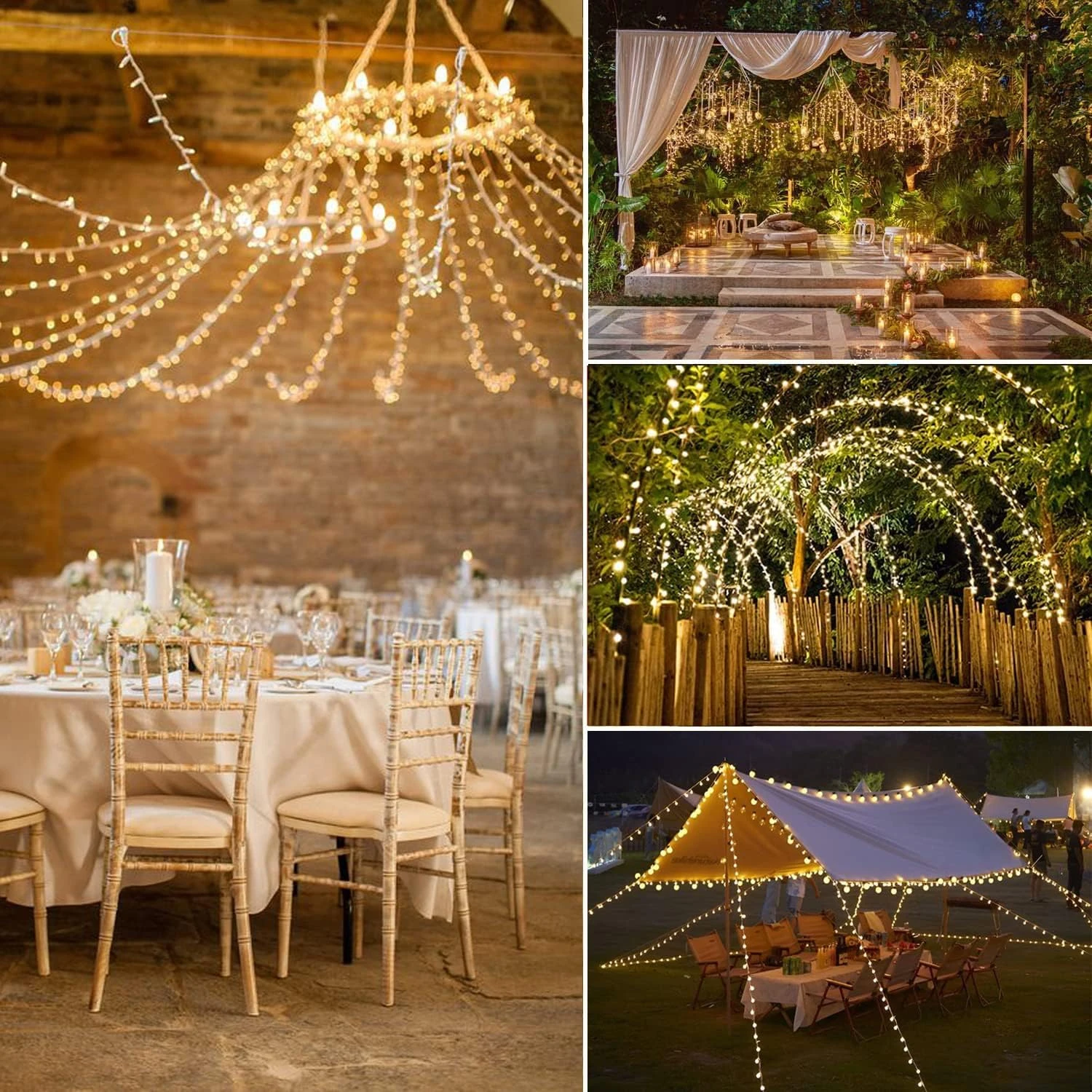 - *Connectable 100 LED Transparent Wire Lights Specification – 100 super bright LED lights, with 32.8ft/10m length of light add 32.8ft/10m power cord, the total length of the fairy light is 65.6ft/20m. perfectly decorative outdoor and indoor, such as fence, patio, garden, gazebo, house, bedroom, stairs, Christmas tree, Halloween and any holiday decoration. The lights can be connect together up 2-4 light chains.
