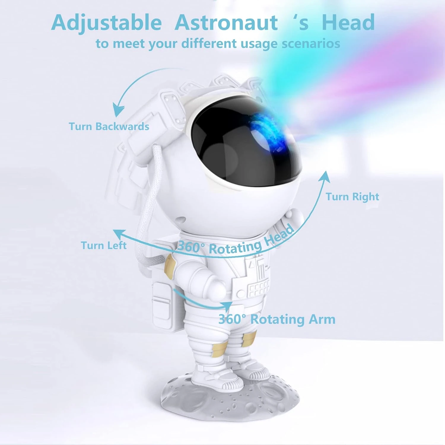 - 🤩[Projection Starry Sky Light Multi-angle Adjustable] This night light starry sky projector is designed to look like an astronaut, astronaut’s head is magnetically connected to the body, making it easy to adjust the nebula projection angle up, down, left and right. In addition, the lunar art base is detachable, the astronaut’s arms can also be placed in various poses, which makes it not only a galaxy and starry sky projector that children like, but also a beautiful decoration gift for lovers.