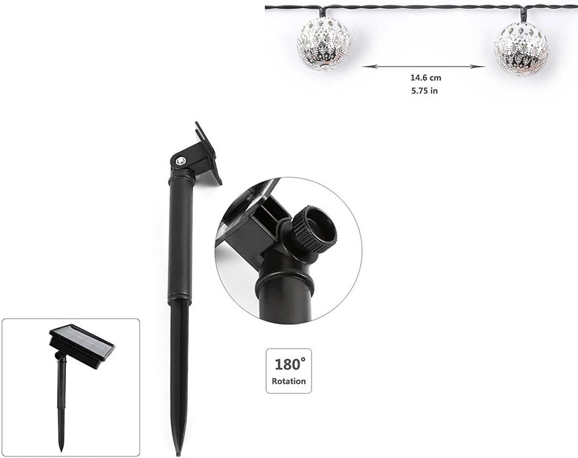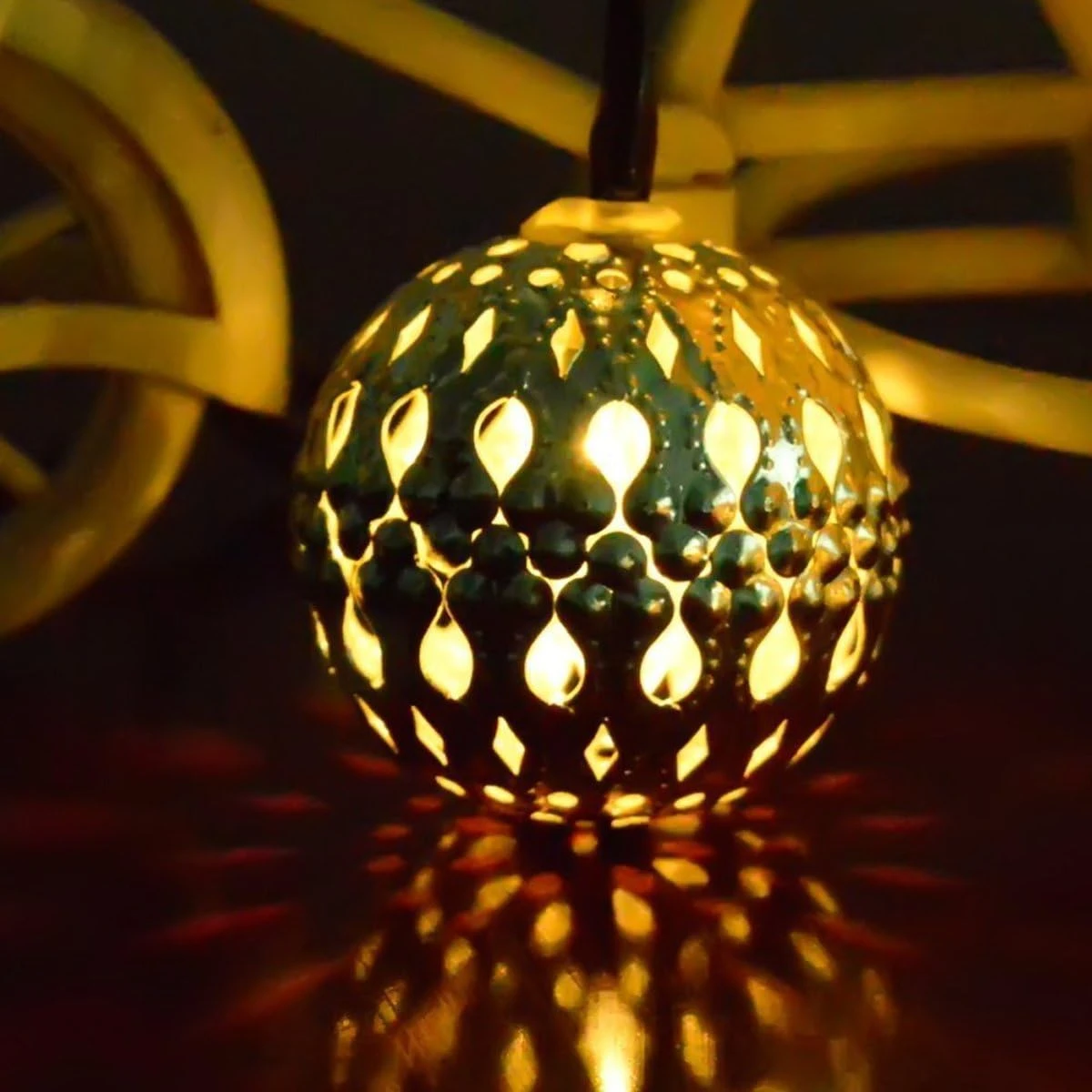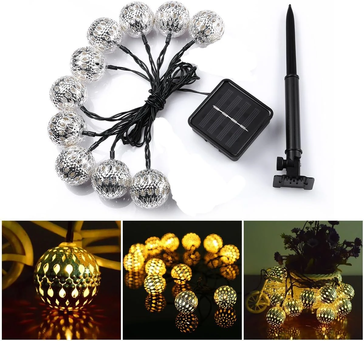 Hann LED Solar Globe String Lights, 12ft 10 LEDs Moroccan Orb Ball, Waterproof Ambiance Lighting, 3000K Warm White, Starry Fairy Lights For Outdoor Garden Yard Patio Party Christmas Party