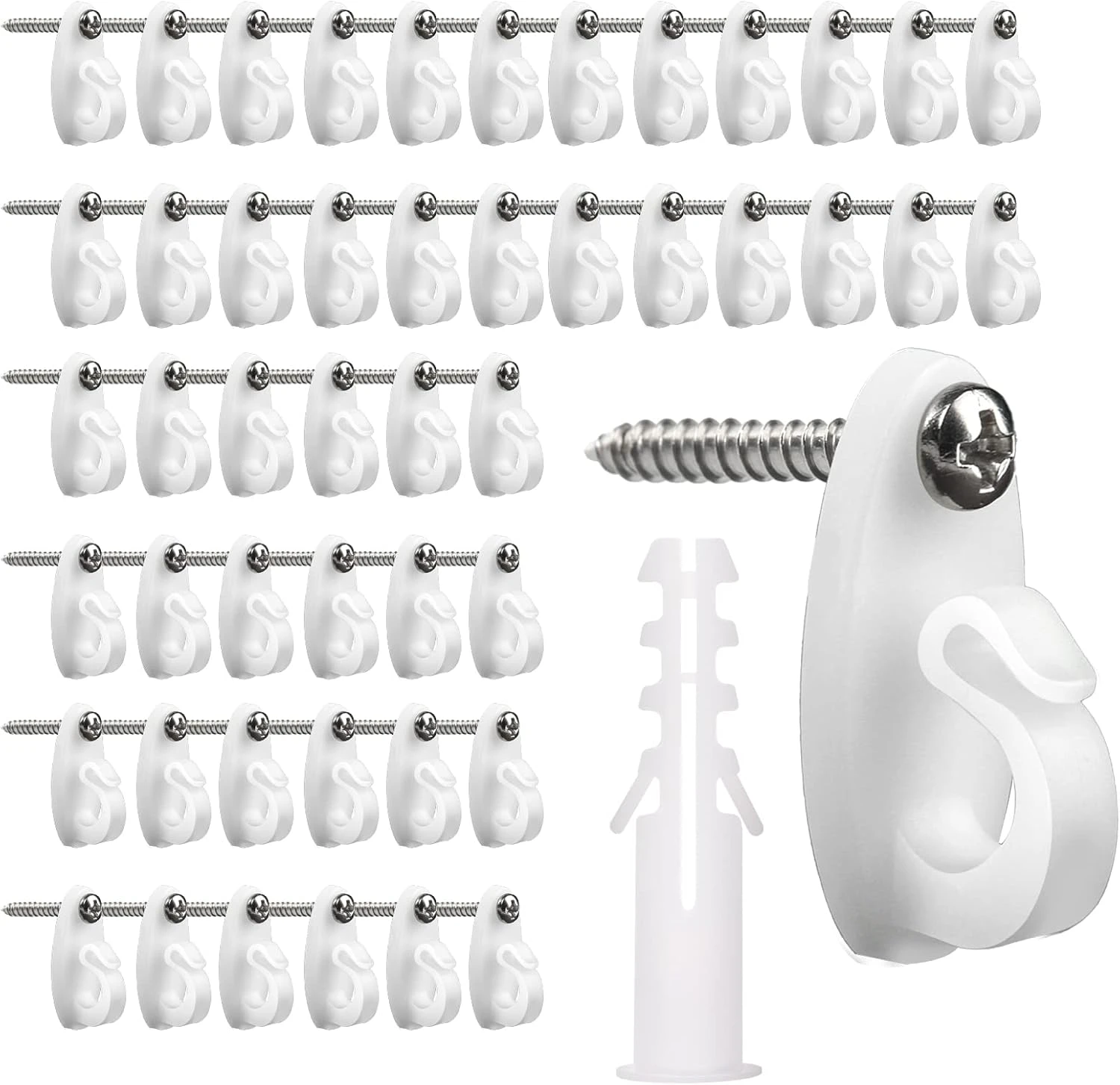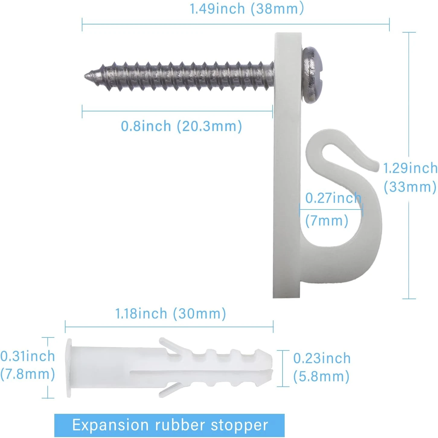 - 48pcs hanger hooks with screw and 48pcs Expansion rubber tube. Size of Light Hooks: 1.37 x 1.14 inches, The length of stainless steel screw is 0.86 inch. Size of Expansion rubber tube: 1 x 0.23 inches.