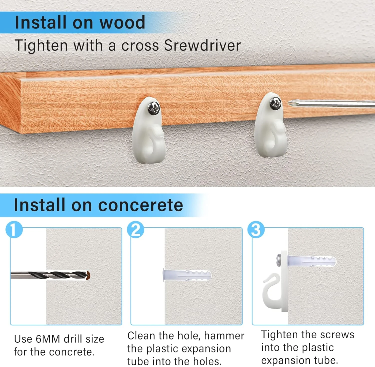 - Christmas lights clips Easy Install on Wood or Wall in seconds. Install on wood, just tighten the screw with a drill/screwdriver into beams or plank.install on concrete wall, Outdoor string light hooks come with plastic Expansion rubber tube, pre-drill a 0.23″ hole, put a Expansion rubber tube into the hole, then tighten the screw into the plastic Expansion rubber tube.