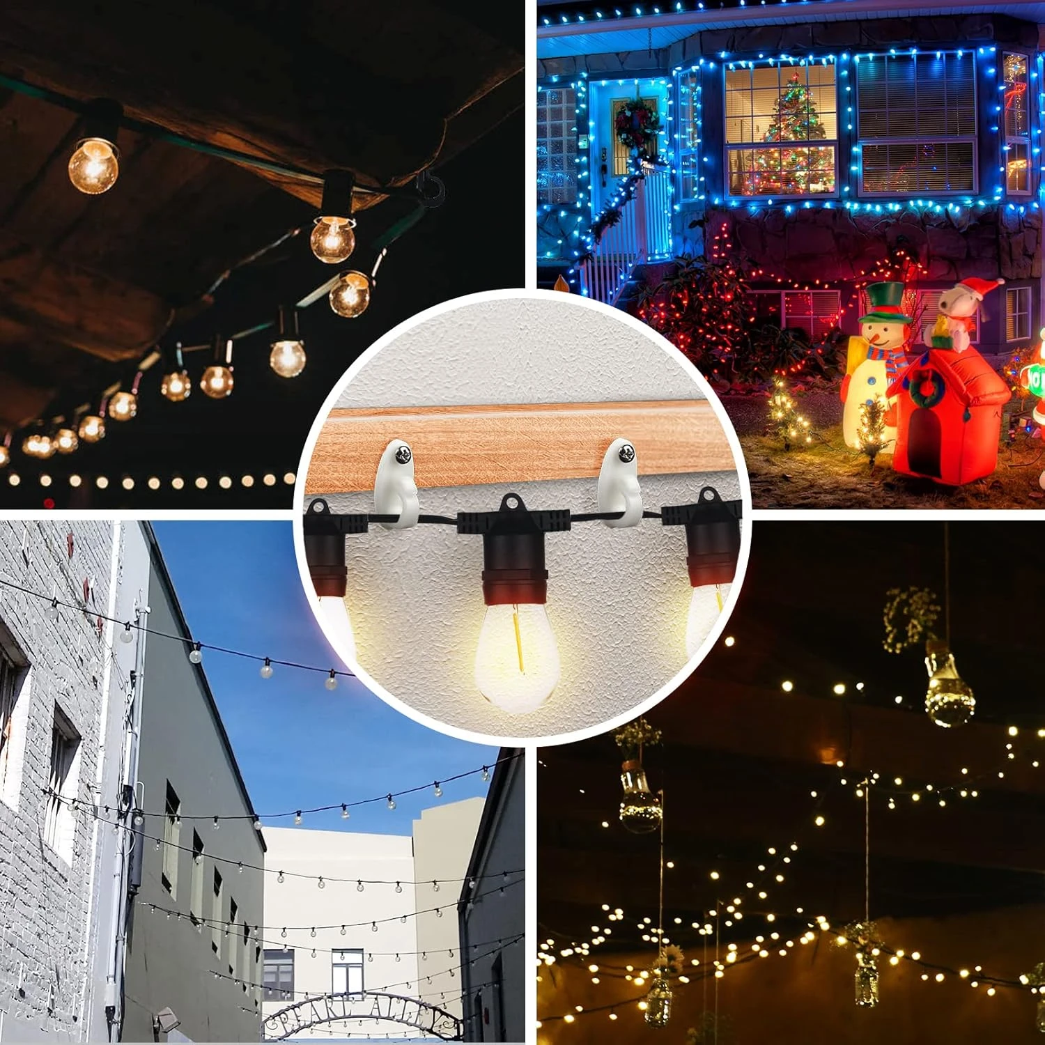 - Patio hooks for outdoor string lights, led christmas lights, fairy lights & Patio Light hanger hooks. Also Good for hanging hook to hang light weight items, such as wall planter,potted plants, wall decorations,Curtain,christmas ormaments..