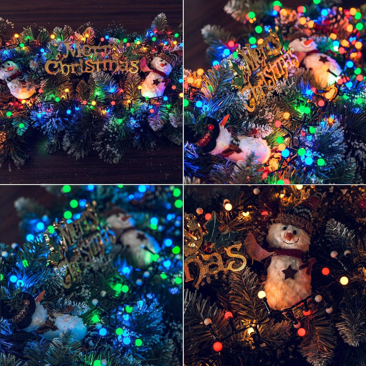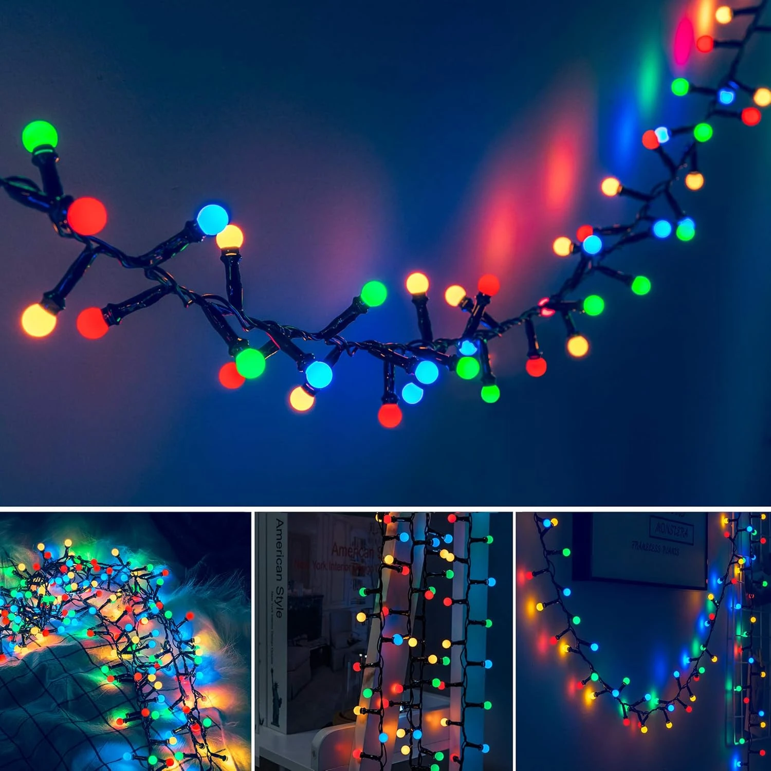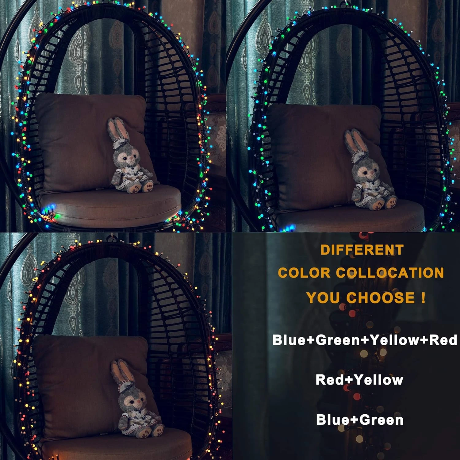 - 480L Christmas Firecrackers Fairy Lights:480 Multi (Red/Green/Yellow/Blue) LED fairy lights with white small globe balls, 33 feet total lighted length, 3mm mini wide-angle bulbs, high density 2cm/0.787-inch bulb spacing on black wire. Very cute small globe string lights,which is perfect for Christmas outdoor decoration.