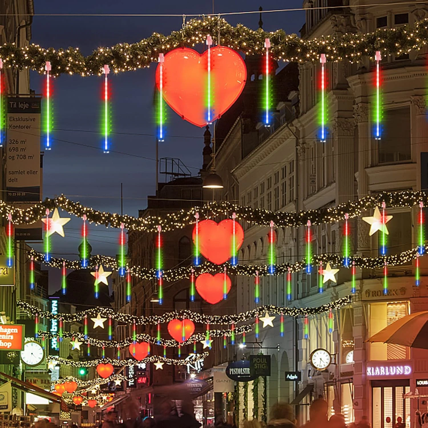 - 【Meteor shower lights are widely decorated for any occasion】Meteor showers and falling snow will make us inexplicably happy.LED falling rain lights are perfect for Christmas,Halloween,Thanksgiving,Valentine’s Day, New Year.Also widely used in wedding, party, business celebration decoration.Due to the unique display effect of the waterproof meteor shower light, it is widely favored by market engineering lighting,landscaping beautifying, architectural decoration, urban night lighting.