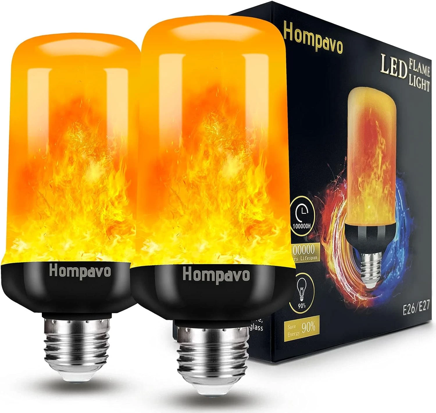 - 🔥【Extend 40% Life Span】More than 40% servicing life than the market. Hompavo LED light bulb is been designed with heat dissipation parts, which can better cool the temperature and extend the service life of the bulb. This energy efficient flame light bulb uses only 3W while emitting 600-Lumens of warm flame-like light.