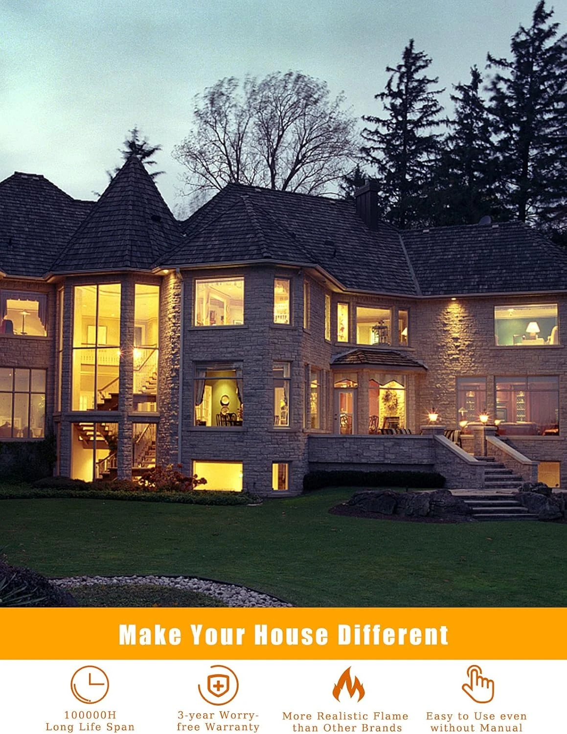 | Special Features | Energy-saving, More Realistic Flame Effect, Halloween Decor, Party Decor, House lighting |