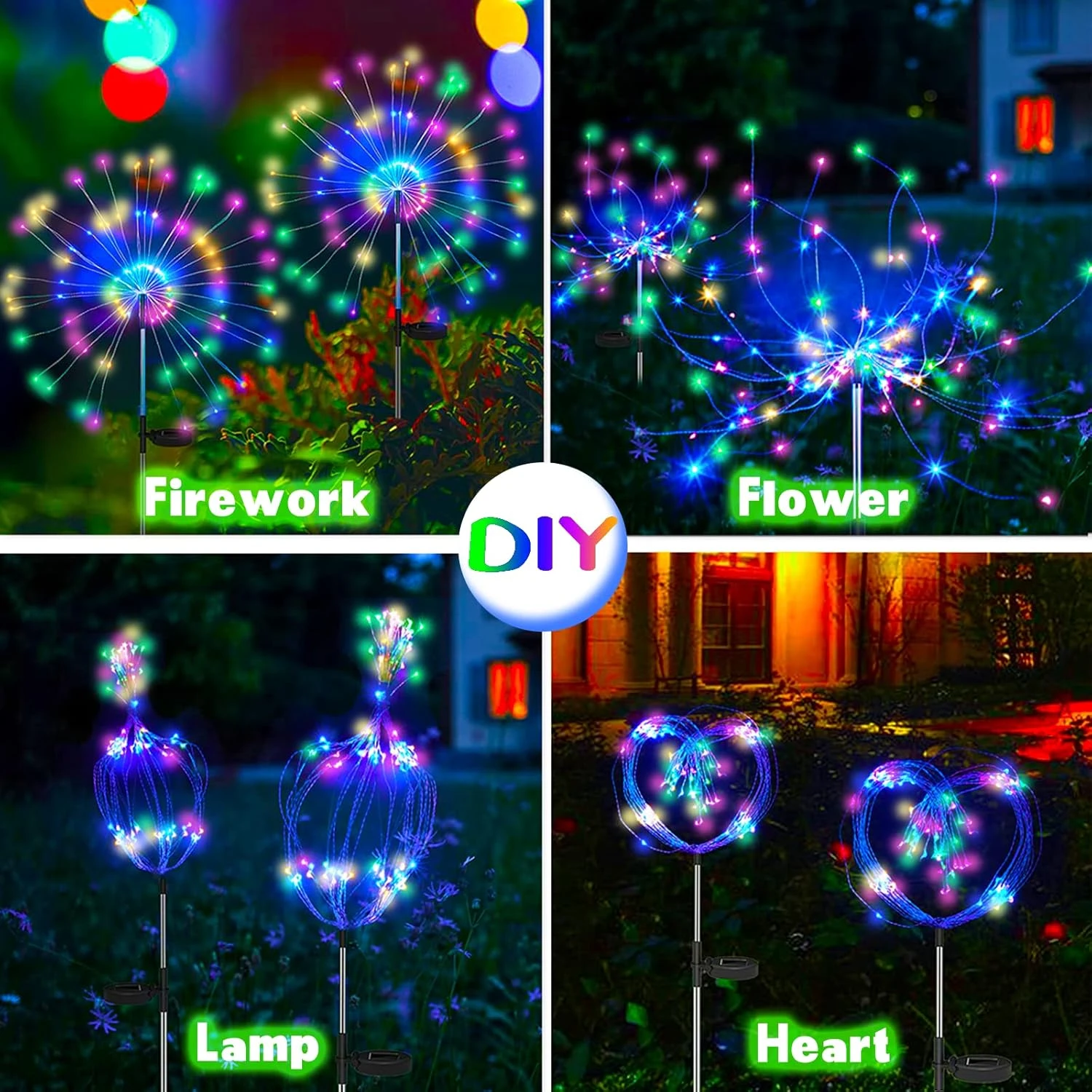 - Wide Application – This solar firework lightswith the flexible copper wires to build the shape in any style, the upgraded 120 high bright LED beads are distributed on 40 flexible copper line, you may have your own creation such as fireworks, Starburst, flowers, etc., If you choose this solar garden lights, when night falls, these LED beads light up like colorful fireworks, blooming in the shape of your design, decorate your garden, courtyards. Just ignite your imagination!