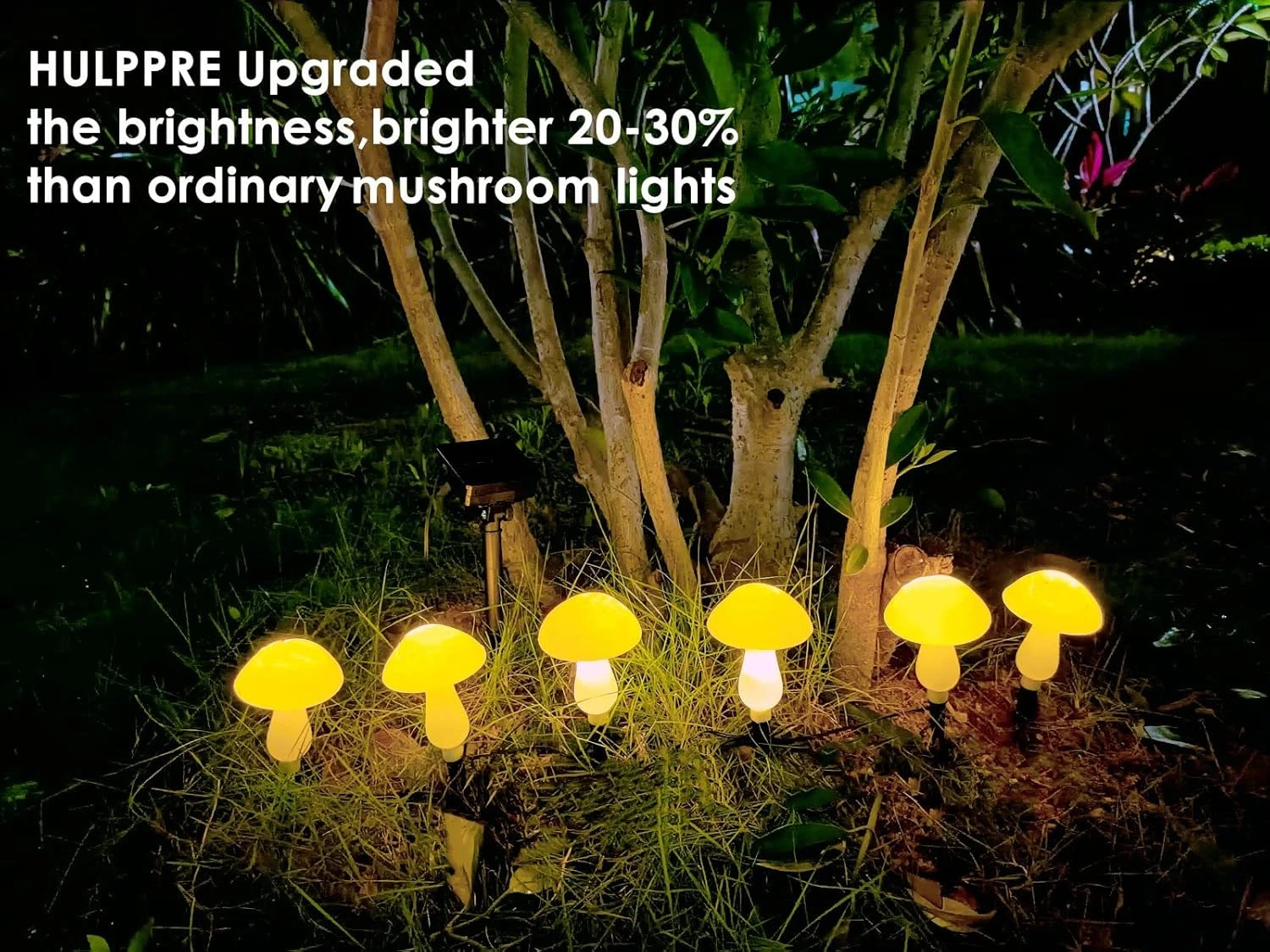 - ãWhat HULPPRE upgraded this solar mushroom lights ãWe listened to the customers’ voice and increase the brightness&,NOW it’s 30% brighter than other ordinary ones,and We maintain the lighting hours(Charge 4-6hrs,lighting 8-10hrs)