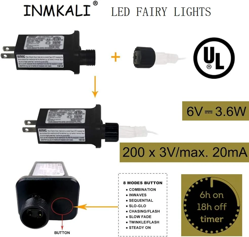 - 【Auto On/Off with 8 Lighting Modes & Memory Function 】: INMKALI twinkle lights have the On/Off button With Timer Function 6H on & 18H off, You can select 8 different modes to satisfy your diverse needs by pressing the mode button.And the built-in memory chip saves your last modes setting, so there is no need to reset it again.