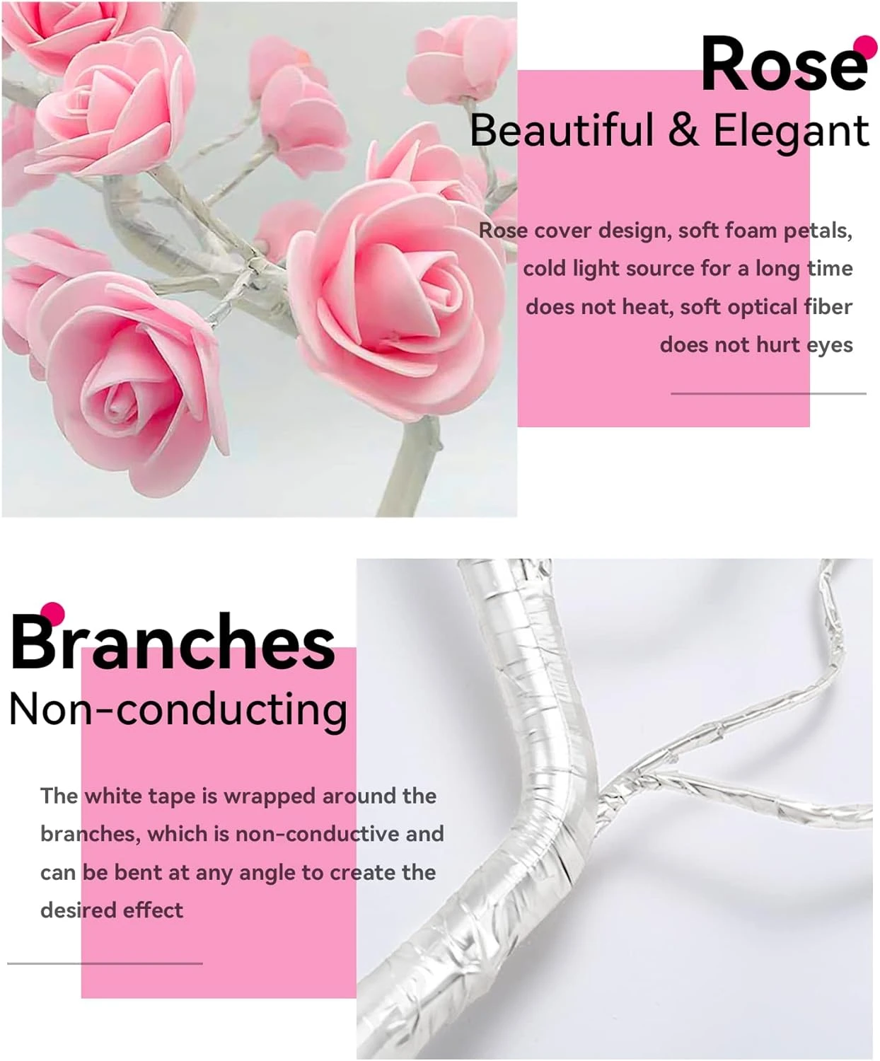 - 💕 【Bendable branches】 This rose tree lamp can meet your own DIY needs through flexible branches, and can shape your favorite shape. The tree body is detachable, plug and play, easy to install, saving storage space