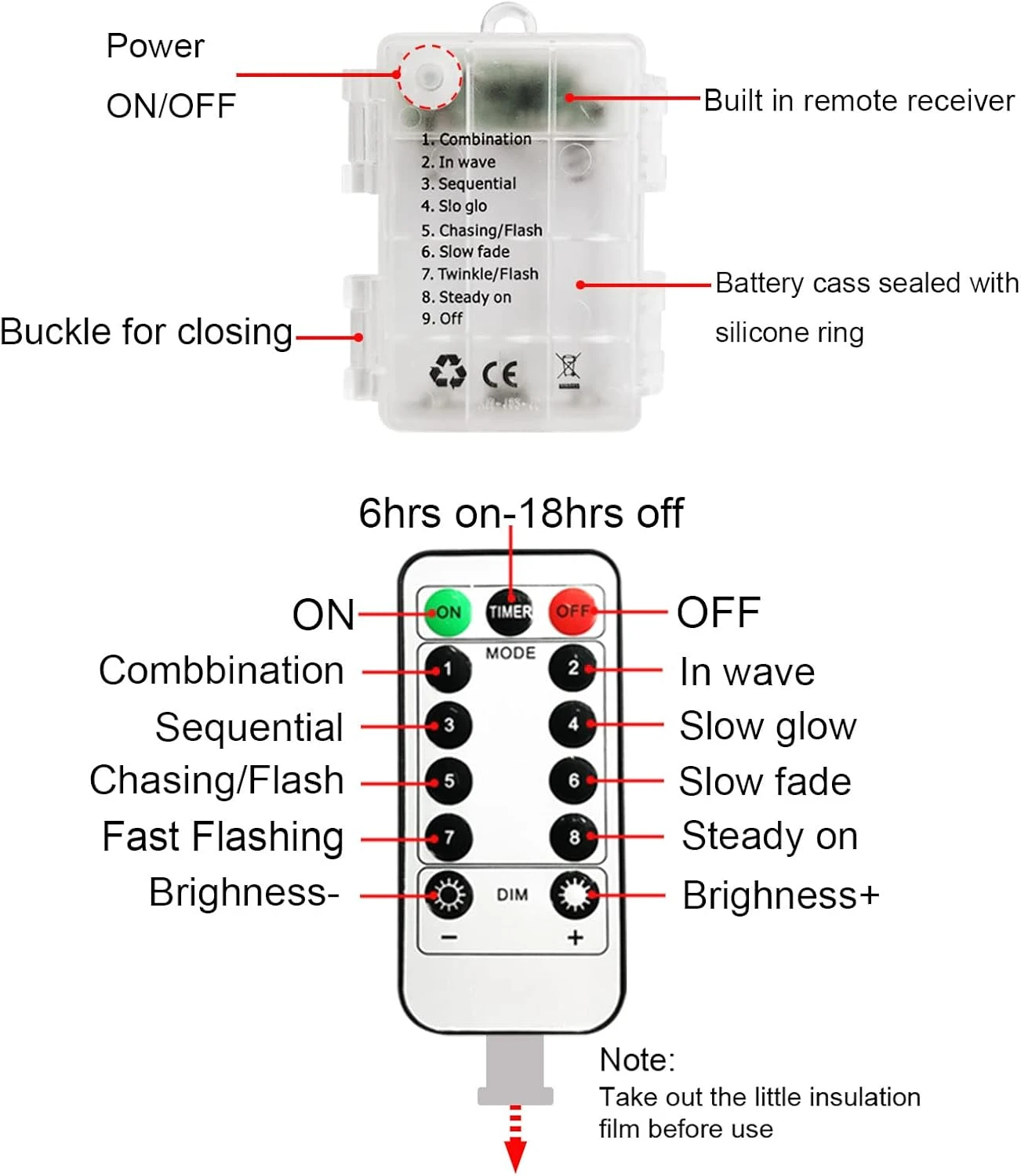 - 💡【Rich Function】:battery powered, warm white, with Remote, 8 modes, shatterproof and waterproof, memory function, dimmable, timer.