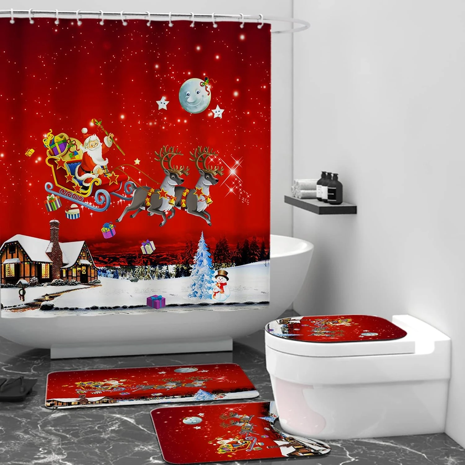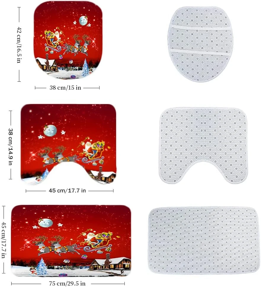- HD 3D Printing: Vibrant colors, Clear image, No fading, No dyes harming health of your family. Cartoon Santa, Christmas tree, white snowflakes, snowman pattern bring a festive and Christmas atmosphere to your bathroom.